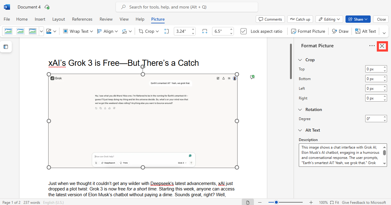 Step 5. Click the "Close" icon, and that’s it your image now has an Alt text.
