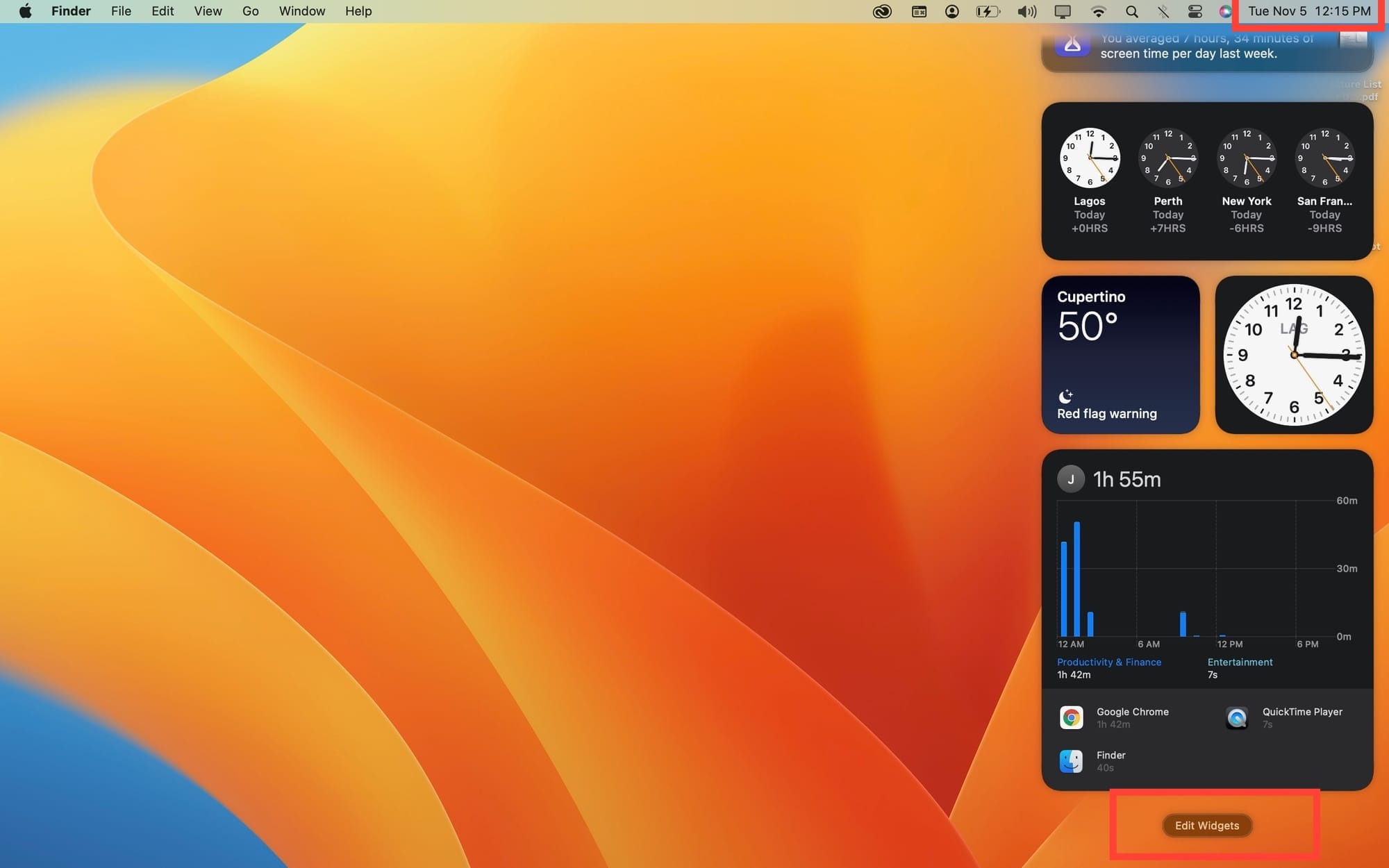 Step 1: Click on the date and time in the top-right corner of your screen. Then, scroll to the bottom of the Notification Center and select Edit Widgets.