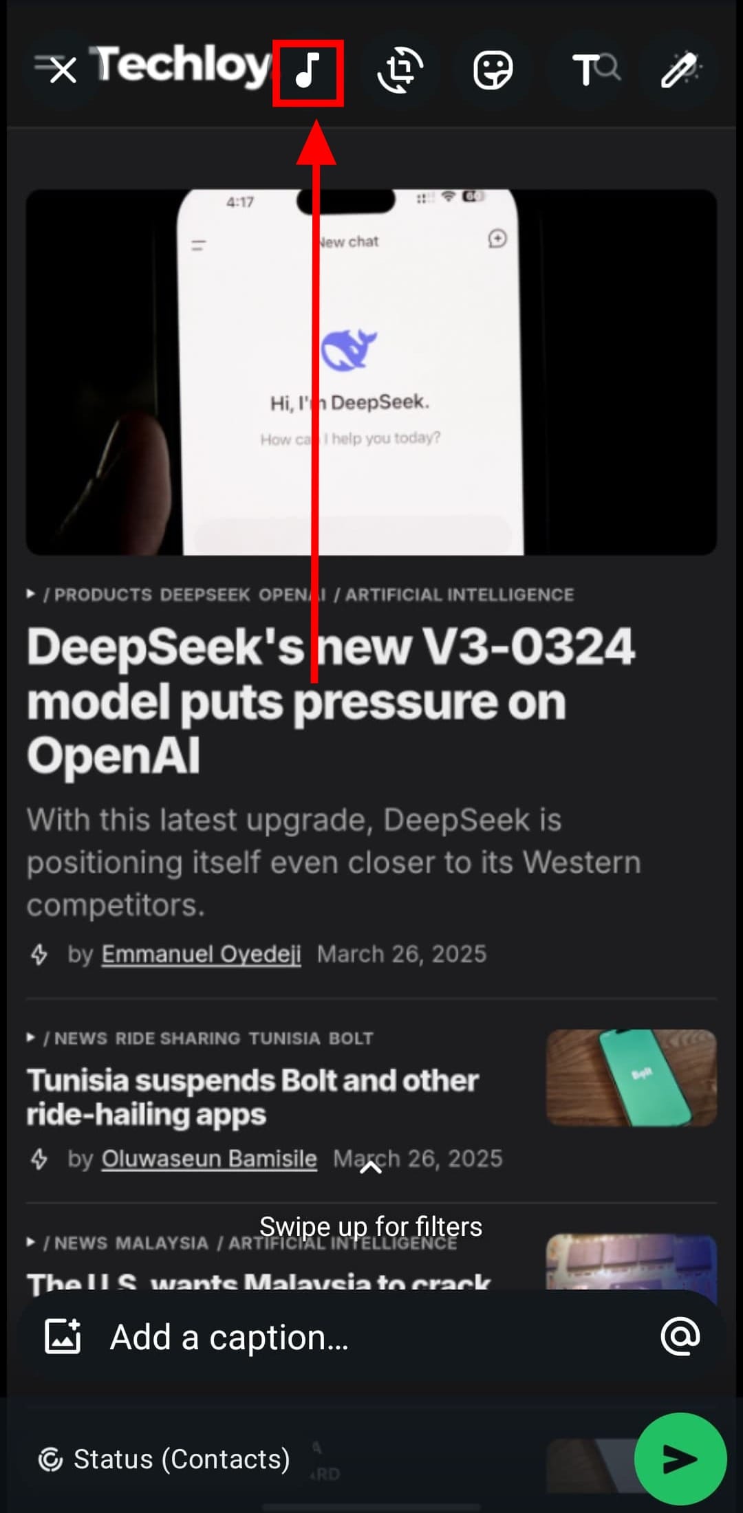 With these simple steps, you can add almost any song to any media on your status, making just a bit more interesting than being plain. Just remember, the feature is still pretty new so it most likely doesn't have a huge library of songs so don't be shocked if you don't see any of your favourites there.