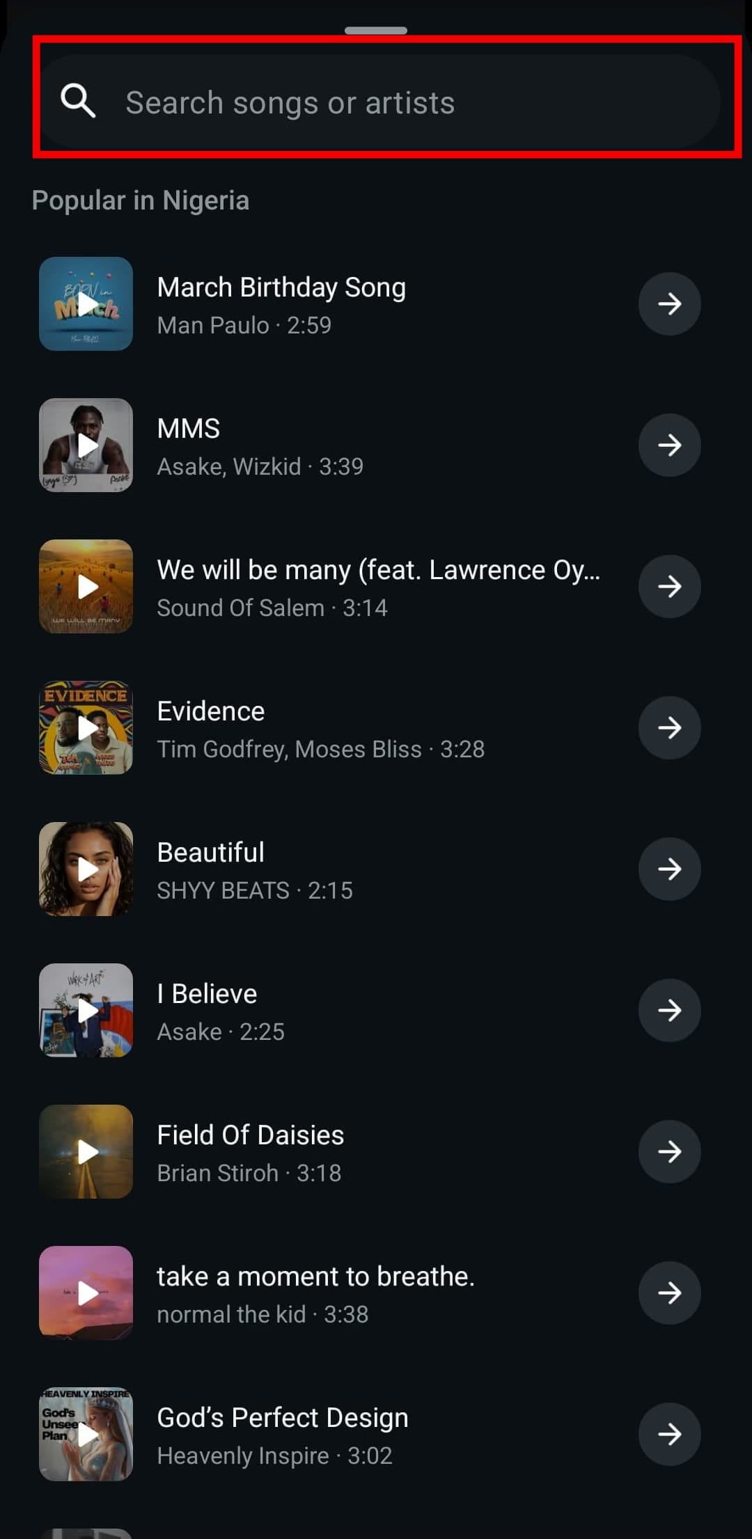 Step 5: Search for any song or pick from the suggested list. I chose from the suggested list.