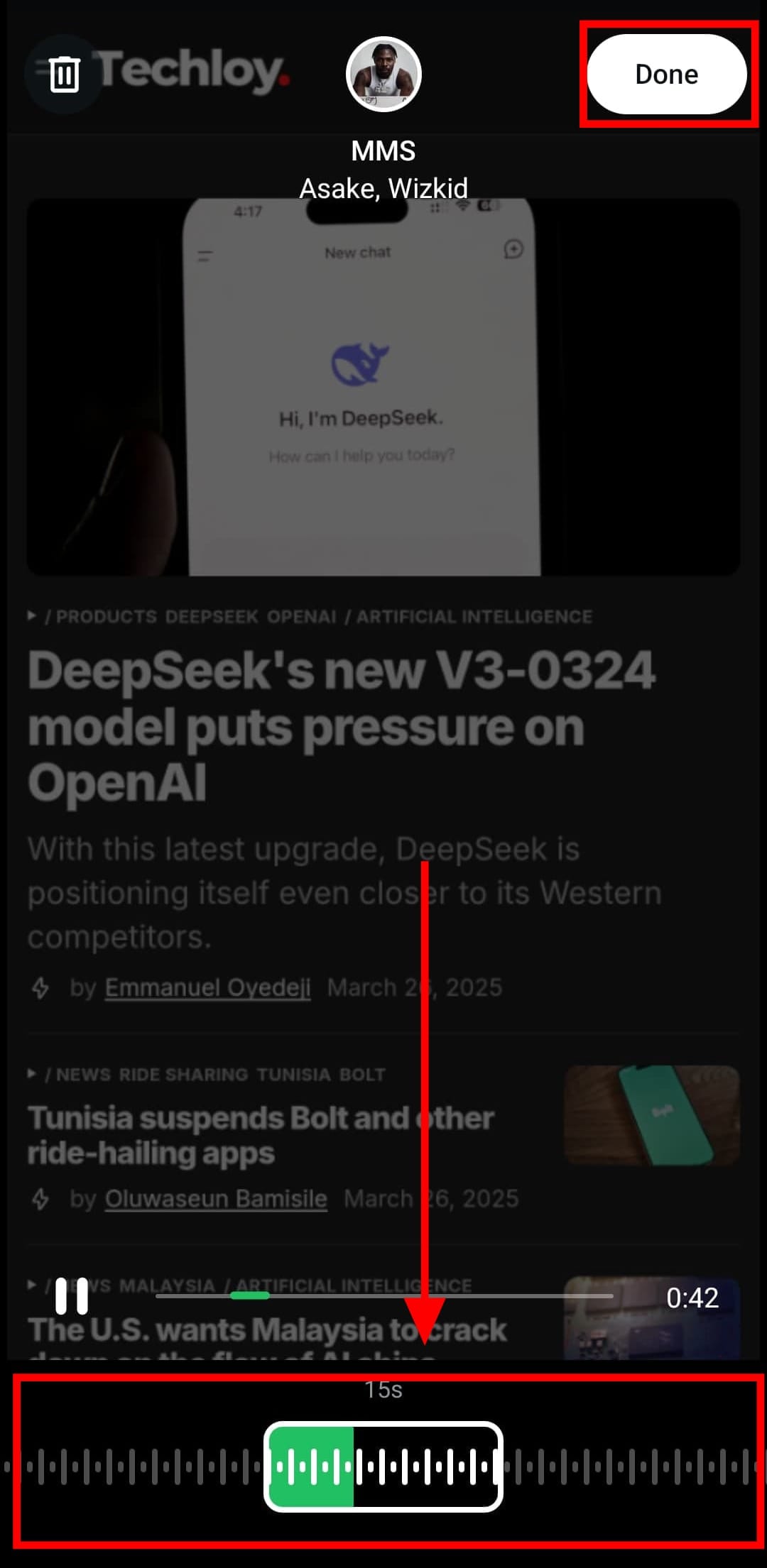 Step 6: Scroll through the song to choose the part you want, then tap ‘Done’