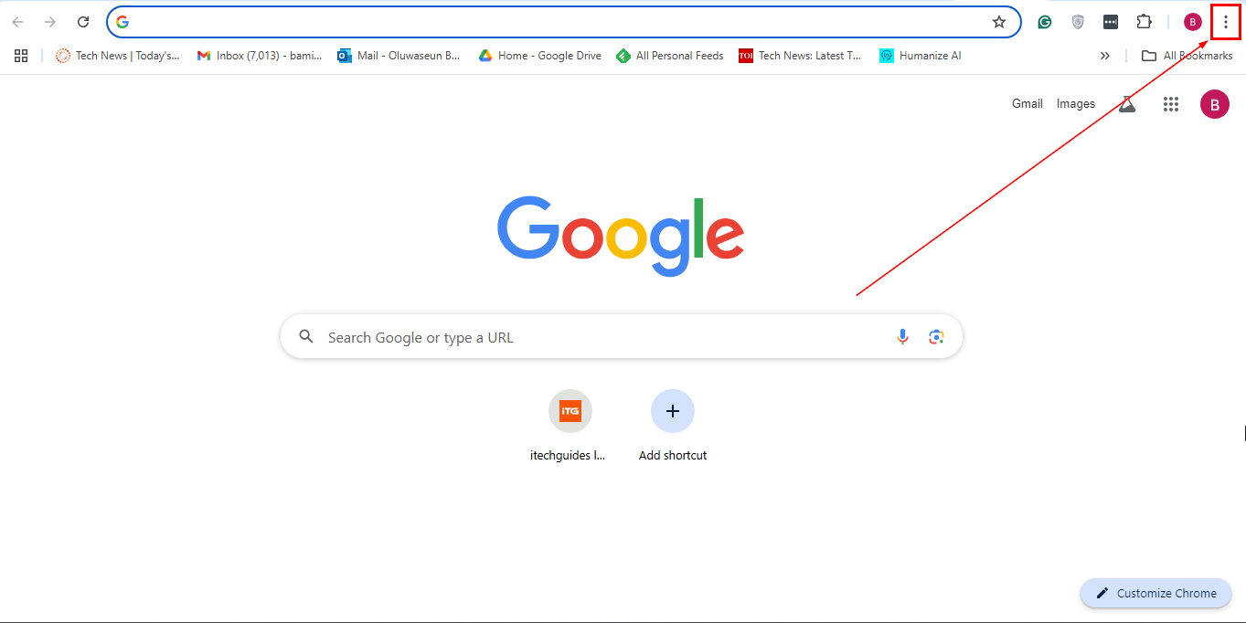 Step 1: Open Chrome and click the three vertical dots in the top-right corner