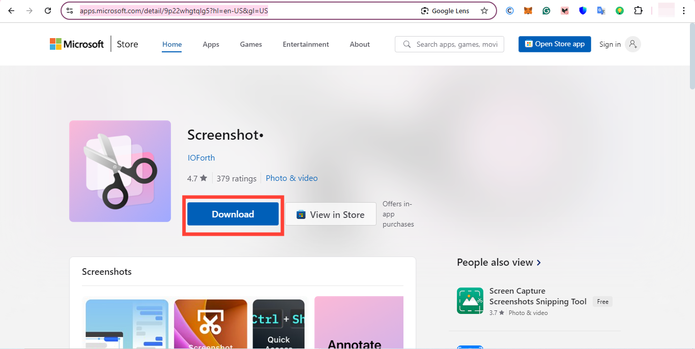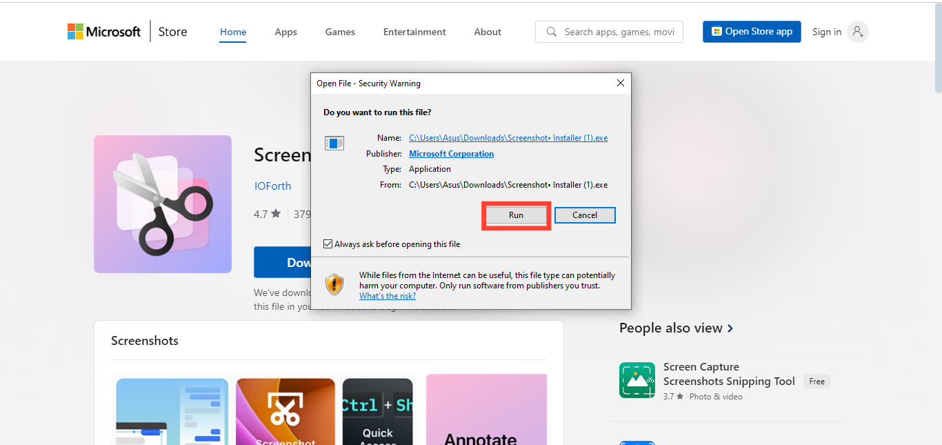 Go to the Screenshot HD page on the Microsoft App Store and click Download Screenshot HD. Install the application by tapping “Run” to complete the installation process.