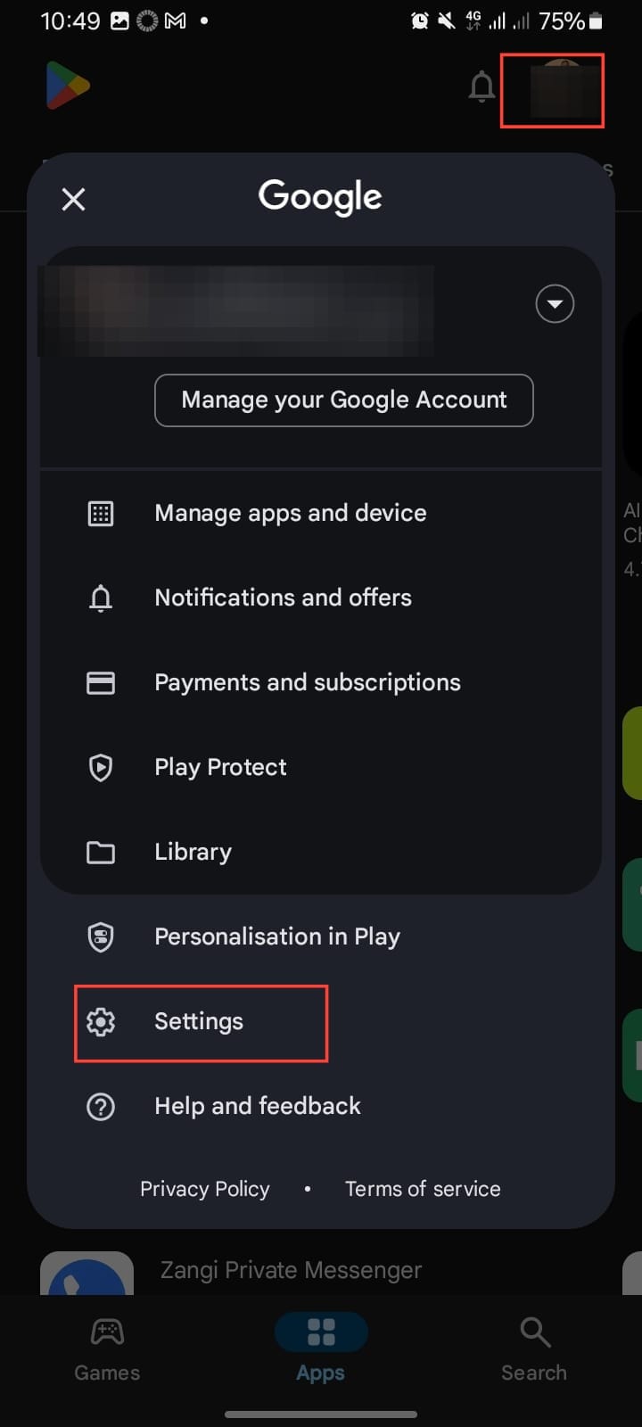 Step 2. Tap on your profile pic and select the "Settings" menu.