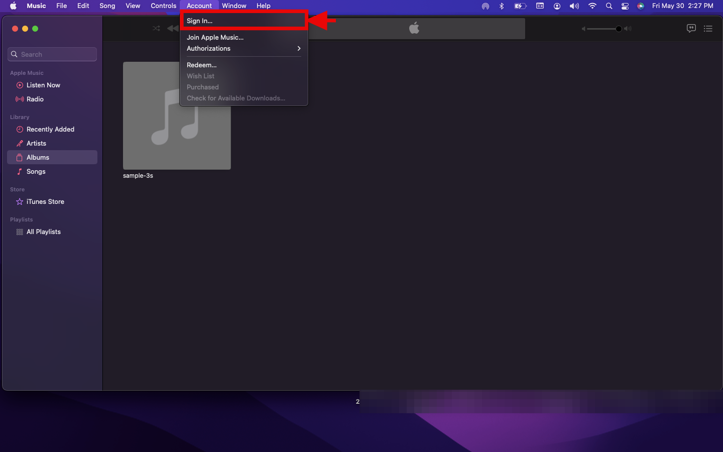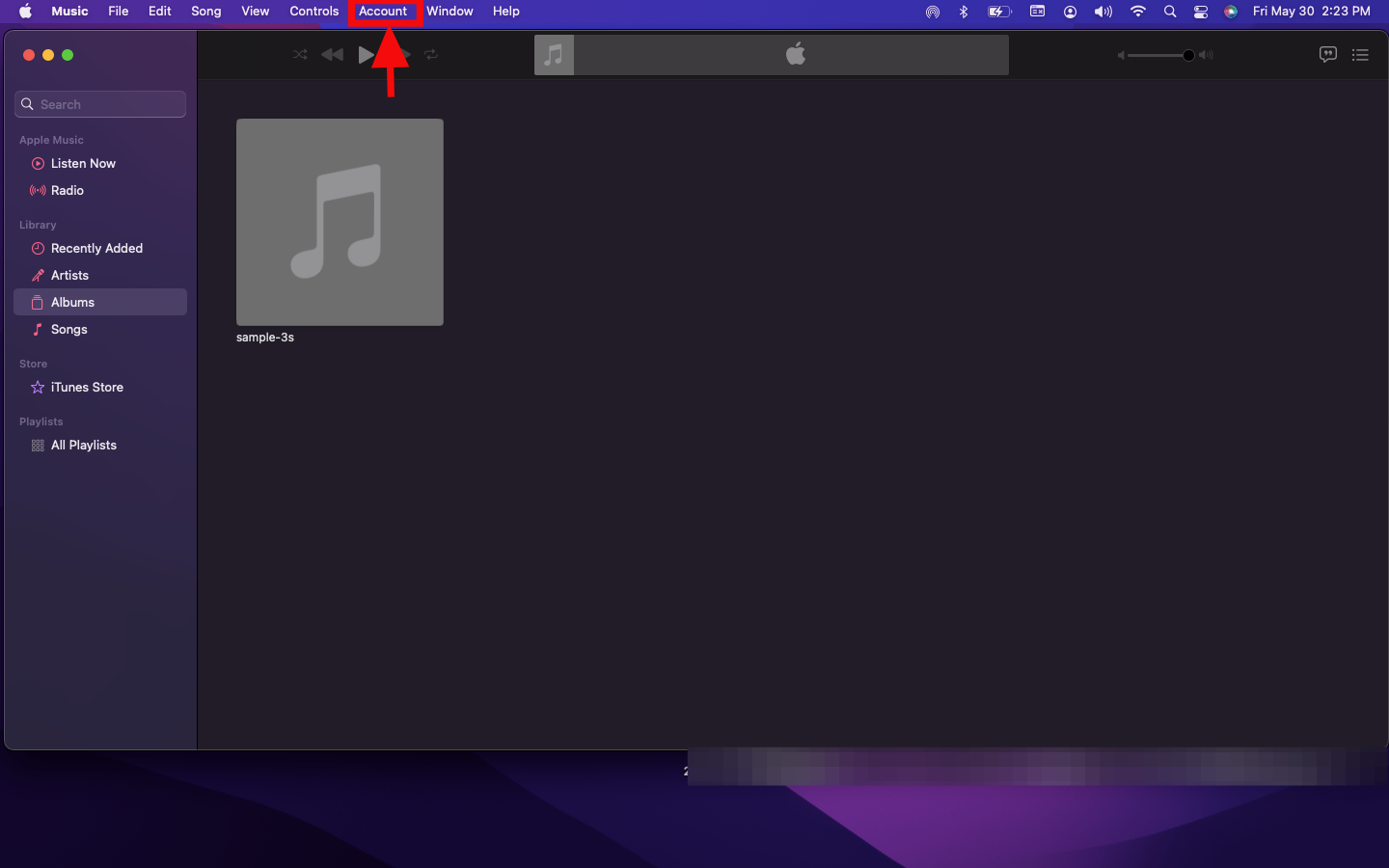 Step 2: Then, click Account in the Apple Menu Bar at the top of your screen