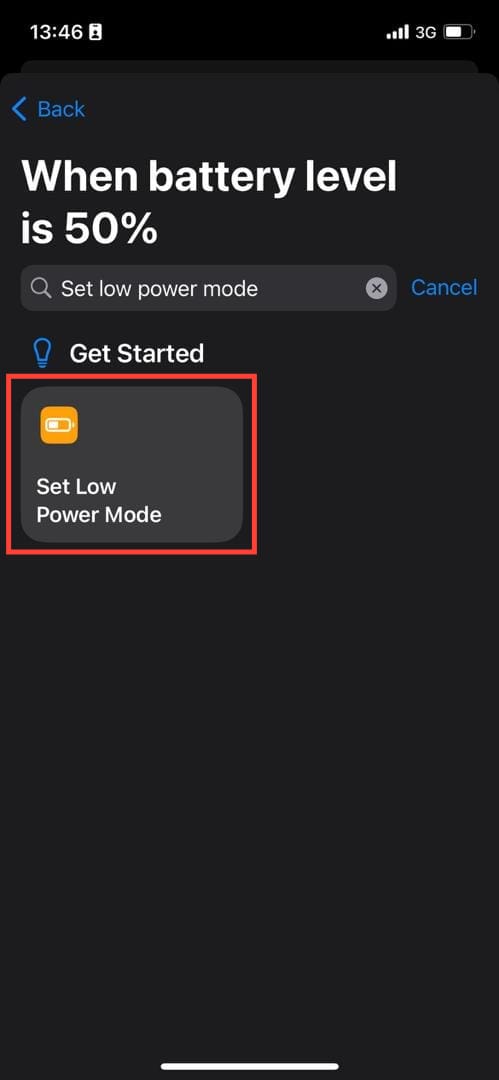 Step 6: Search for "Set Low Power Mode" and select it from the results.