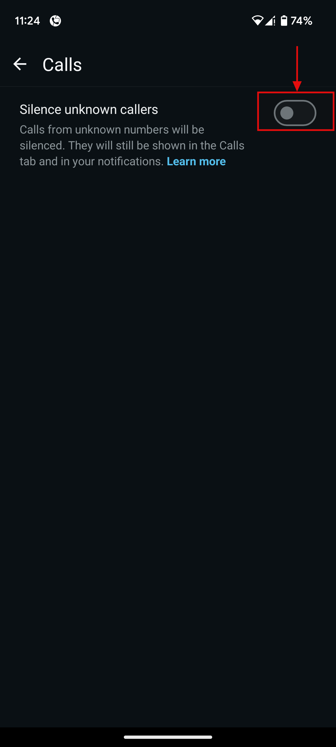 Step 5: Toggle on the Silence unknown callers option