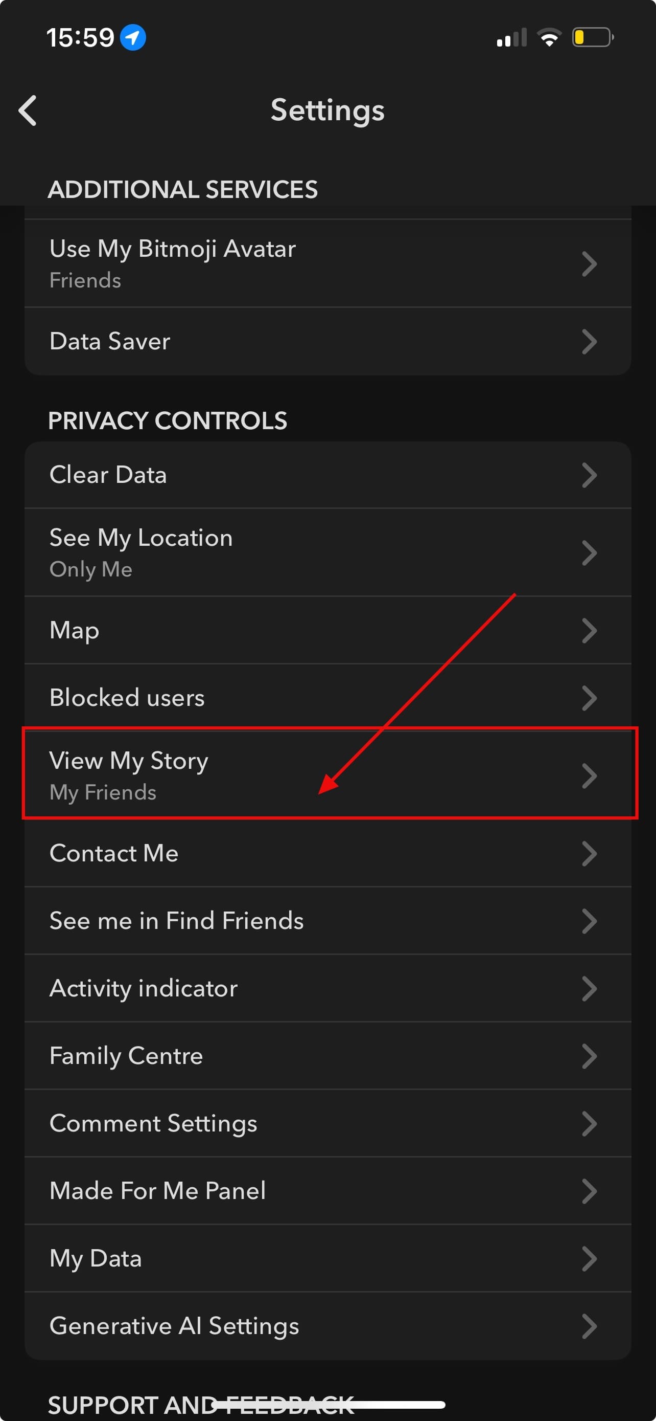 Step 3: Scroll to "Privacy Controls" and click "View My Story"
