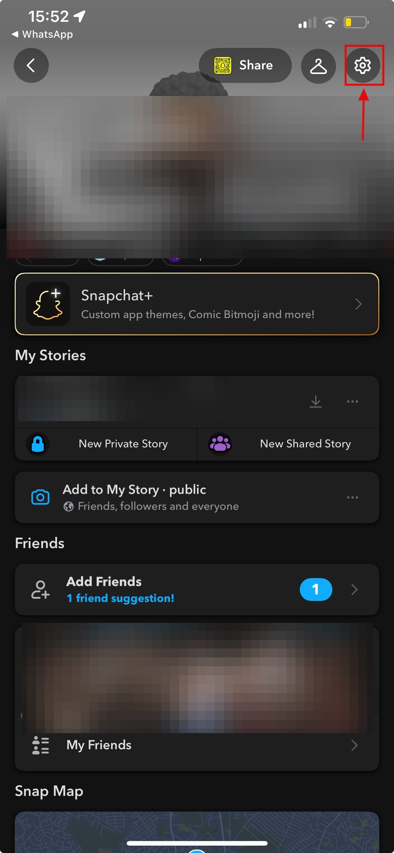 Step 1: Open Snapchat on your device, then click on your profile icon at the top left of your screen