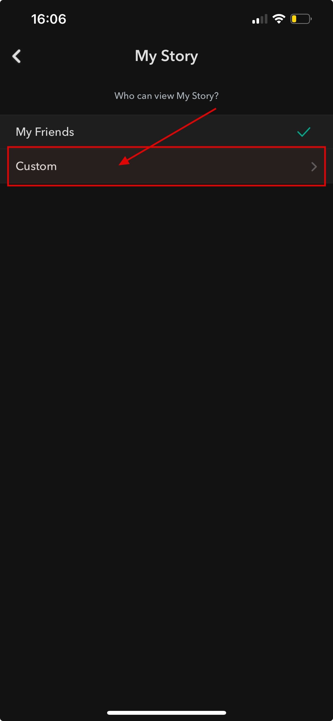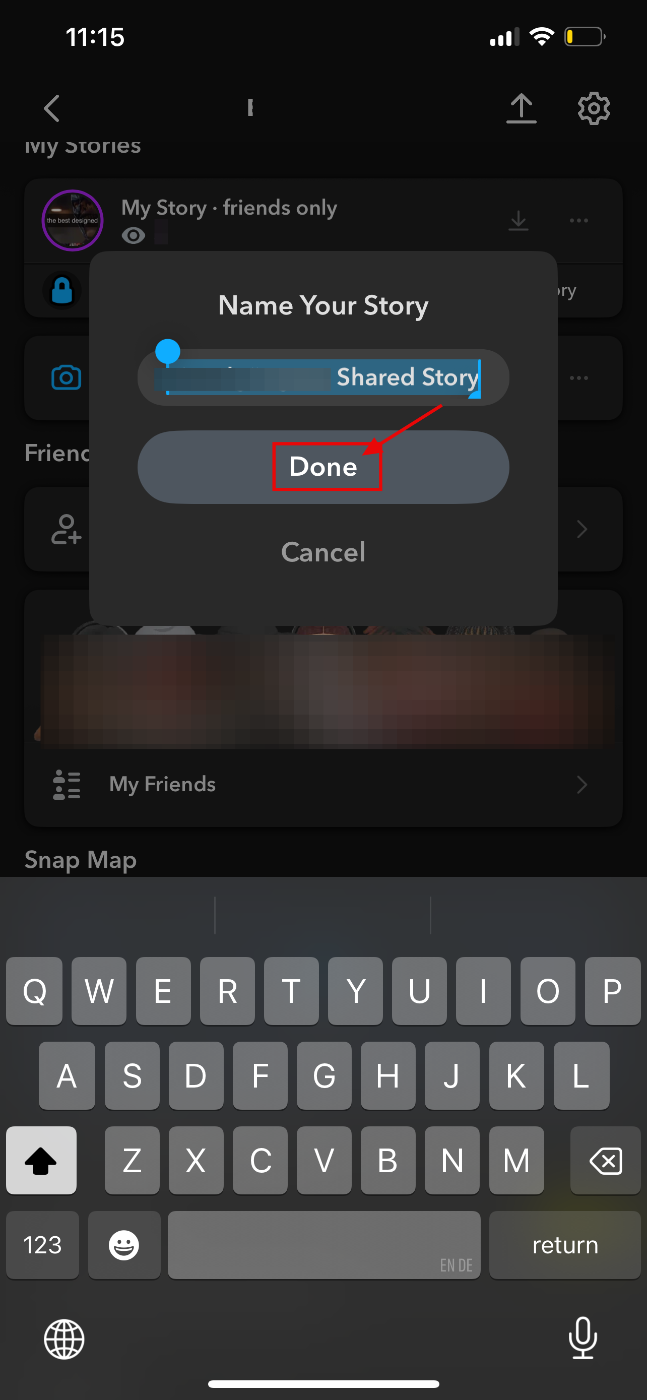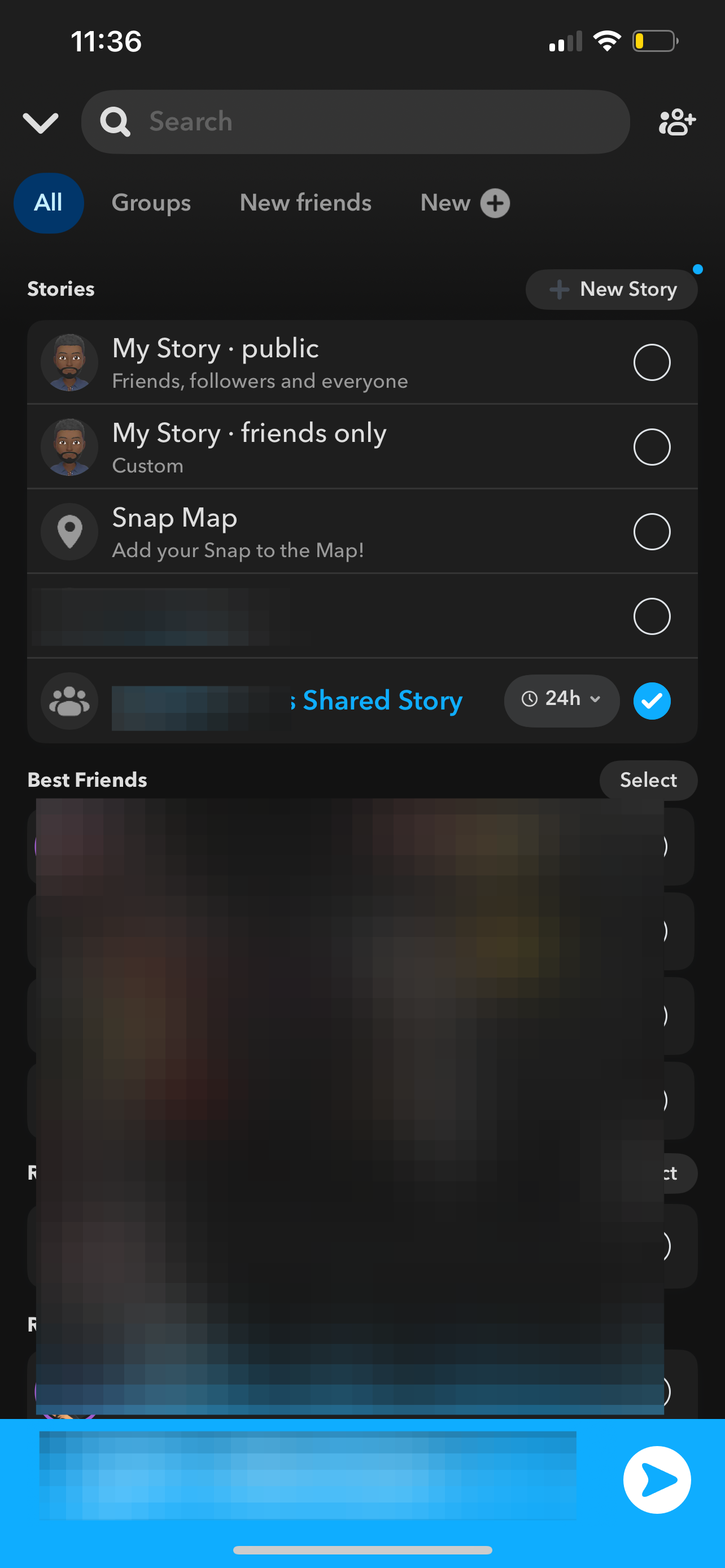 Step 5: Take a Snap, then select your Shared Story instead of “My Story.” Only the friends you added in Step 3 will see it