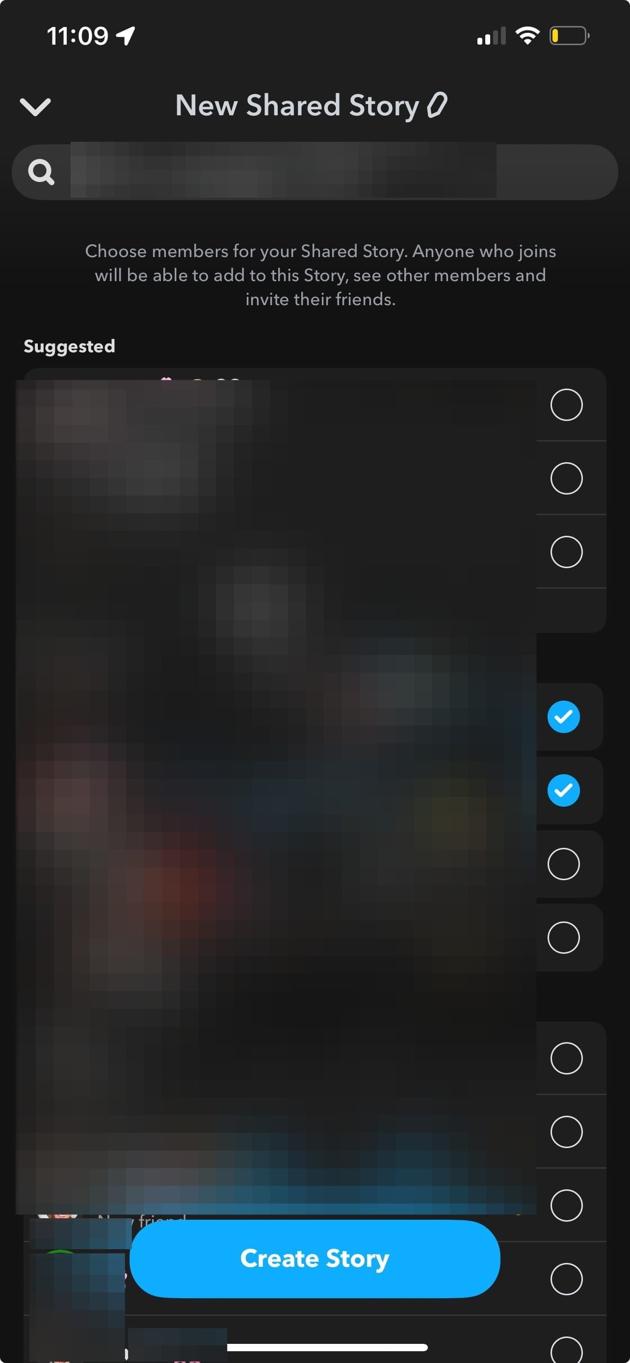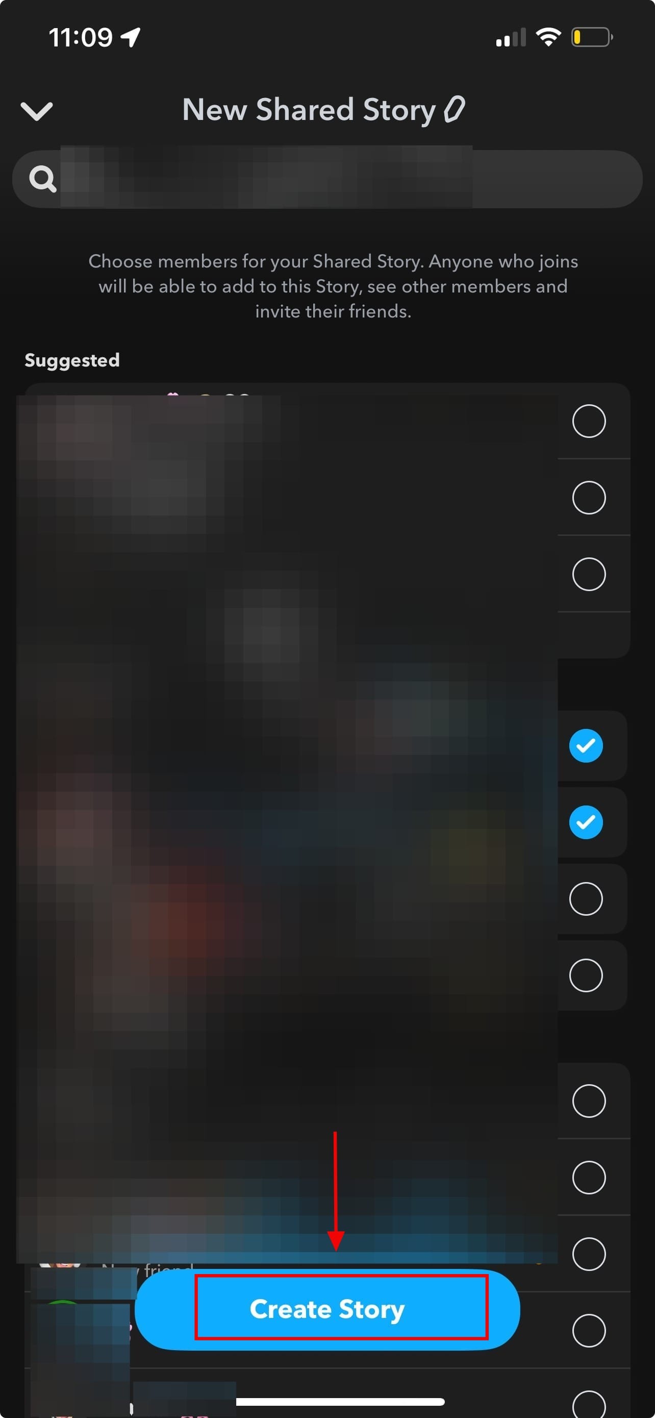 Step 3: You’ll see your friends list. Select the specific people who can view and add Snaps to this shared story