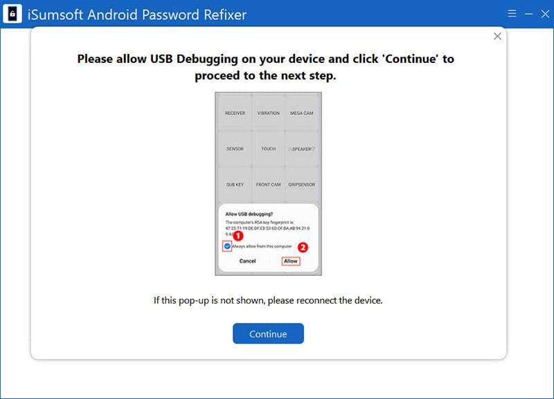 - Step 8: Once your phone receives the prompt, check the option for “Always allow from this computer” and tap Allow. Then, go back to the software and click Continue.