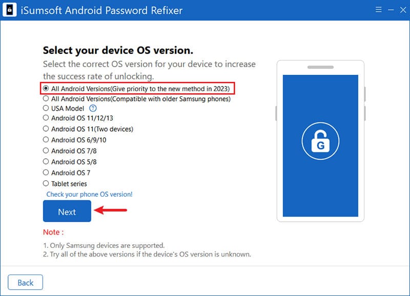 Using iSumsoft Android Passcode Refixer, you can easily bypass Google account verification (FRP lock) on your Android device. This trusted FRP bypass tool works with Samsung, Vivo, and Xiaomi, allowing you to remove the FRP lock quickly and efficiently. You need a computer and follow the steps below.