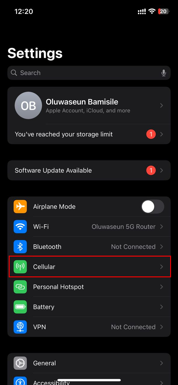 Step 1: Open the Settings app and tap Cellular (or Mobile Data, depending on your region)