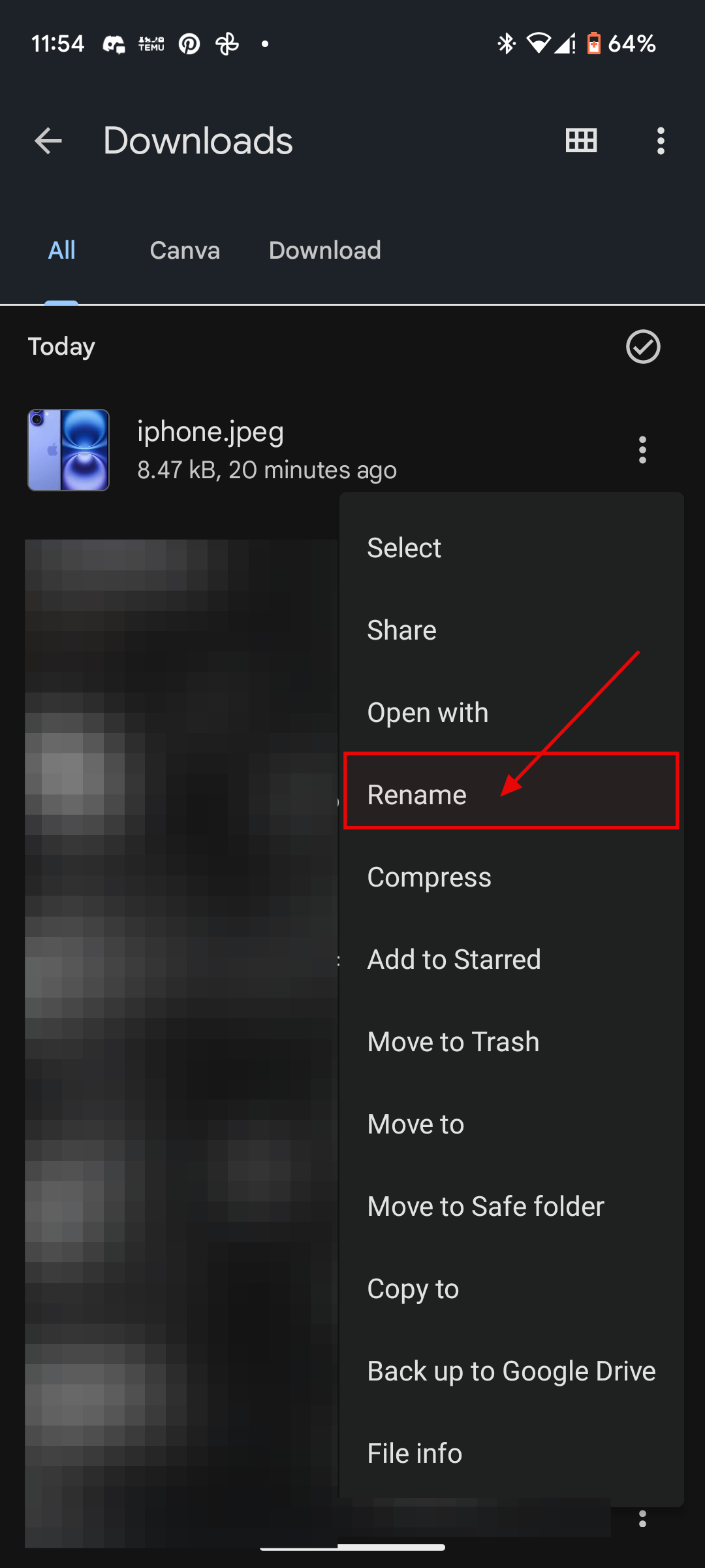 Step 2: Go to the file you want to rename. For instance I want to rename an iPhone image in Downloads