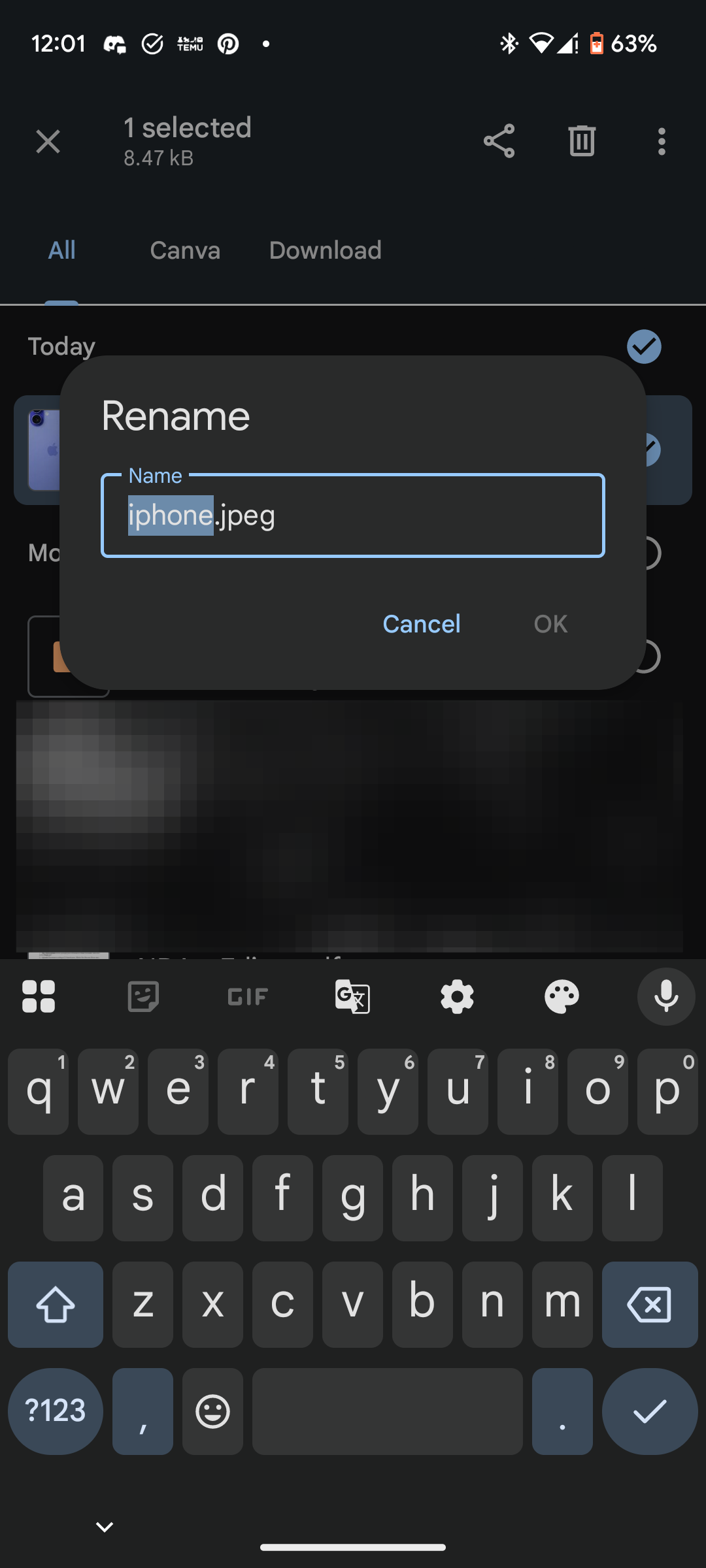 Step 4: Replace the existing file extension with a new, compatible one and tap OK. For instance, I'll be changing .jpeg to .png