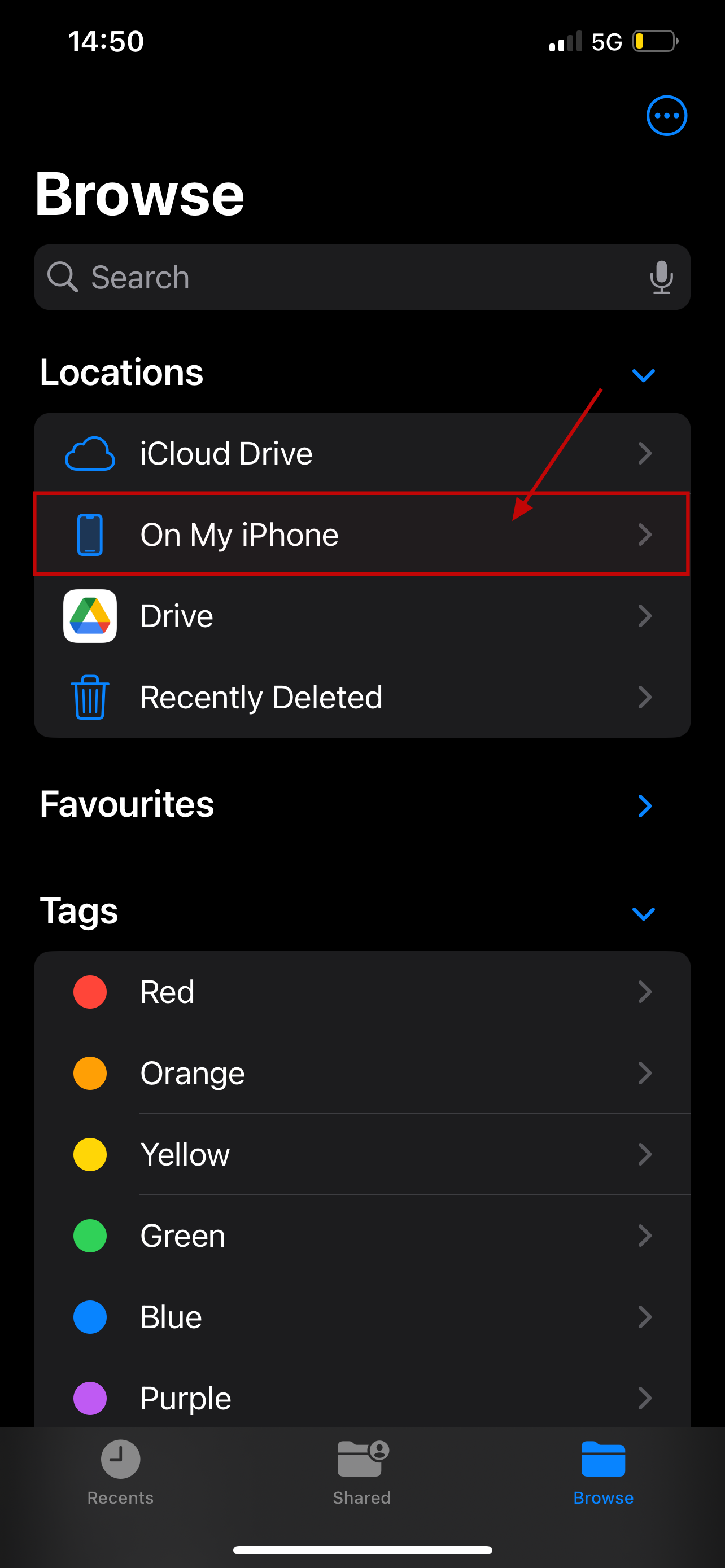 Step 2: Once Browse is open, click On My iPhone to see all the files currently on your iPhone’s storage