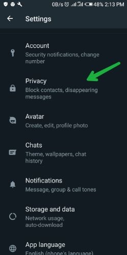 - Click on Privacy
