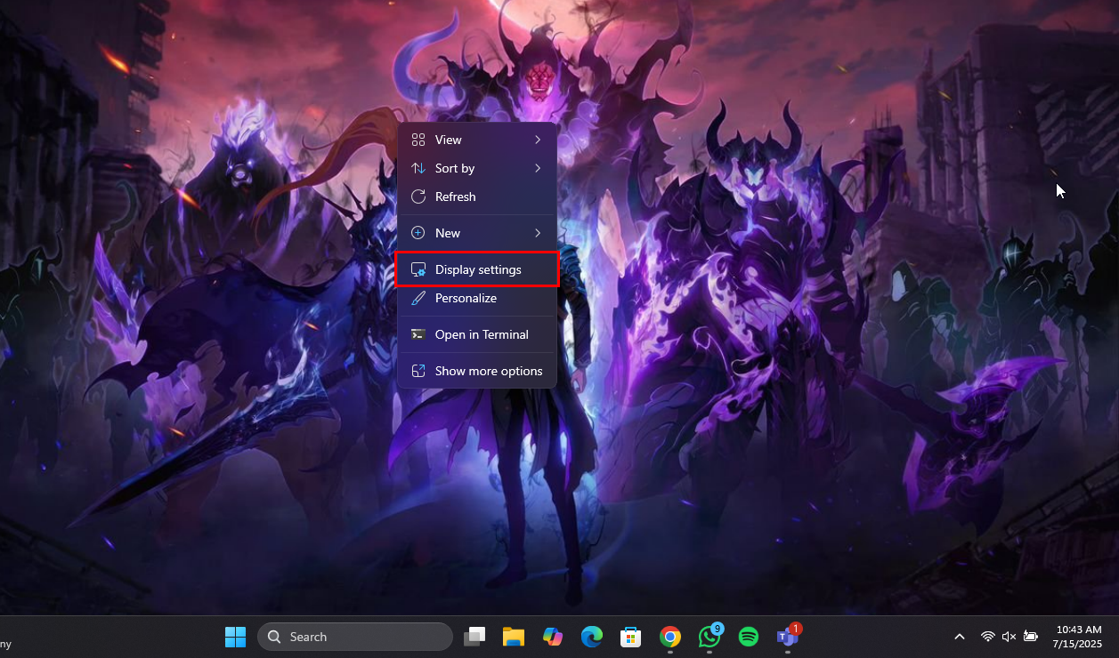 Step 1: Right-click on your desktop and select "Display settings"