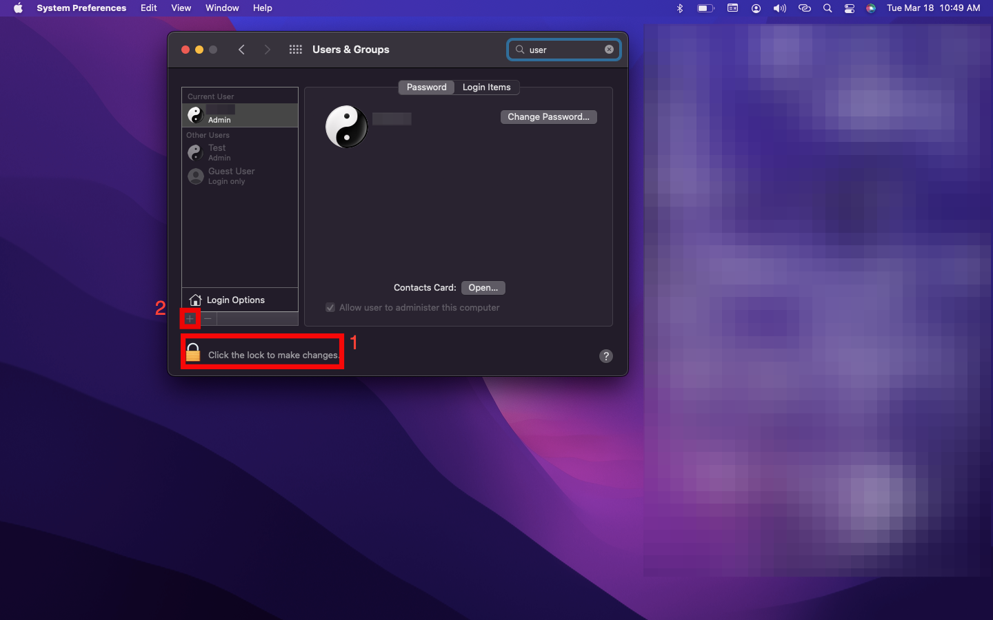 Step 3: Click the Lock to make changes and click the + Button to add a new user