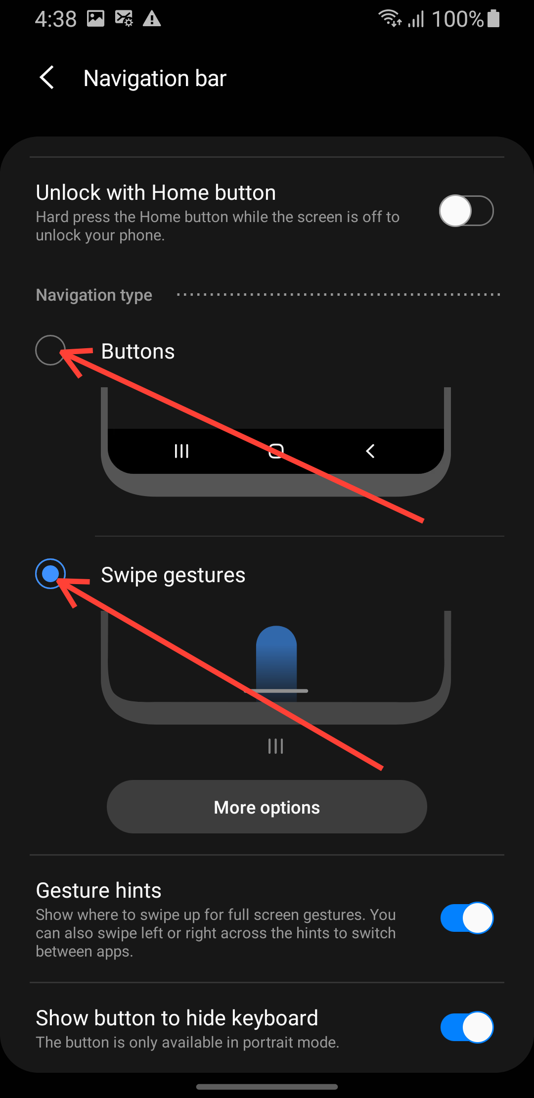 Step 3: In the navigation bar, select Buttons if you prefer buttons, or select Gestures if you prefer swiping to navigate.