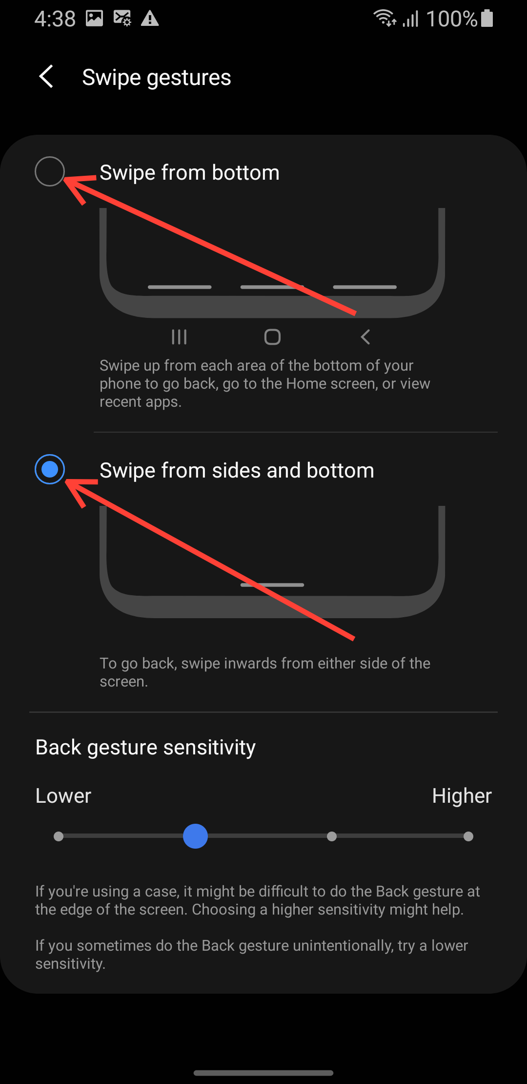 Step 6: If you select Gestures, you can also adjust the swipe gesture to use. But commonly: