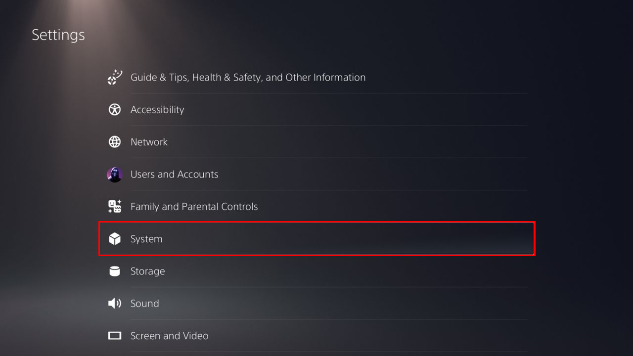 Step 1: Log into your PS5 console, then click the Settings icon at the top right, next to your profile icon
