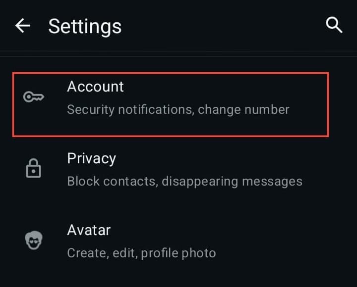Step 3. Tap on "Account"