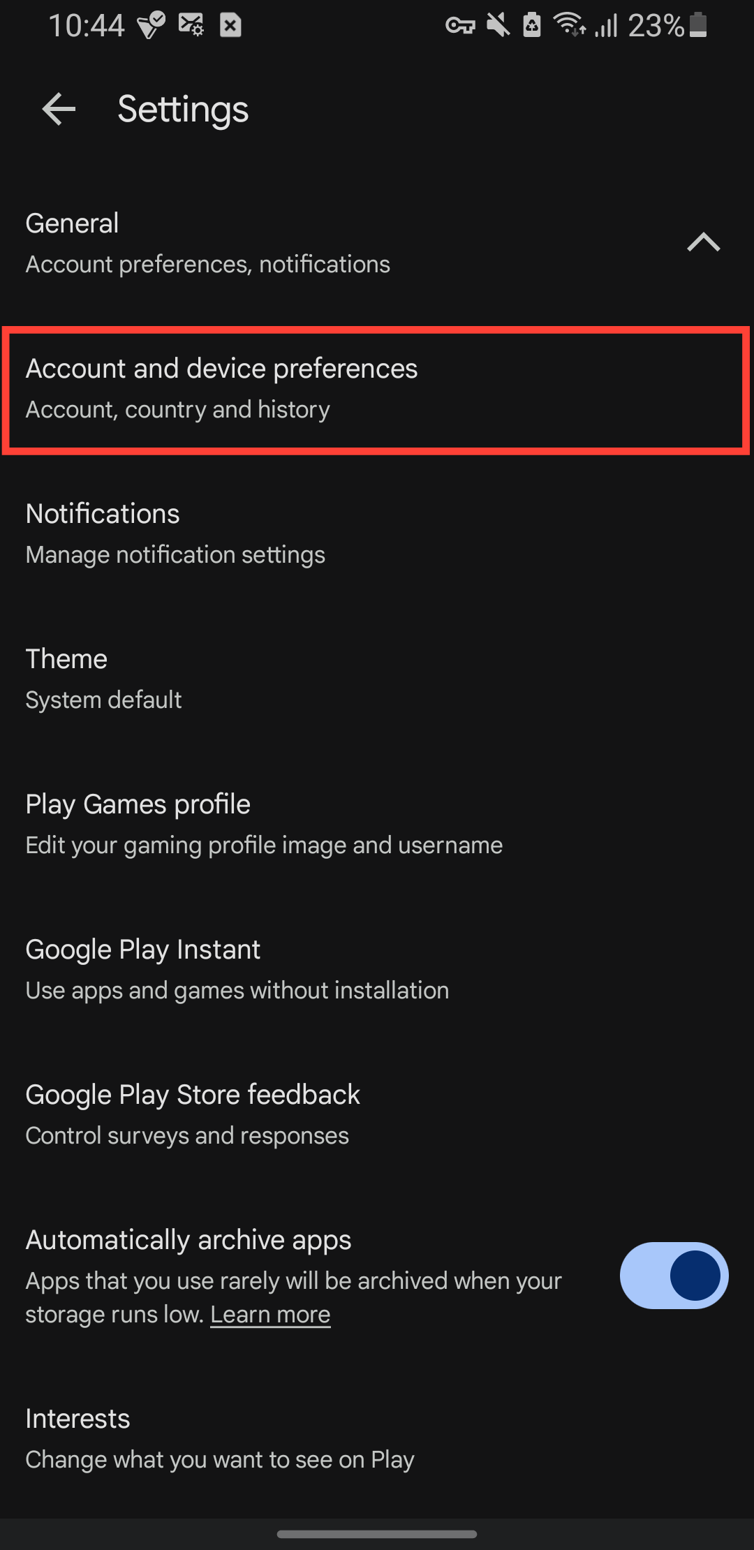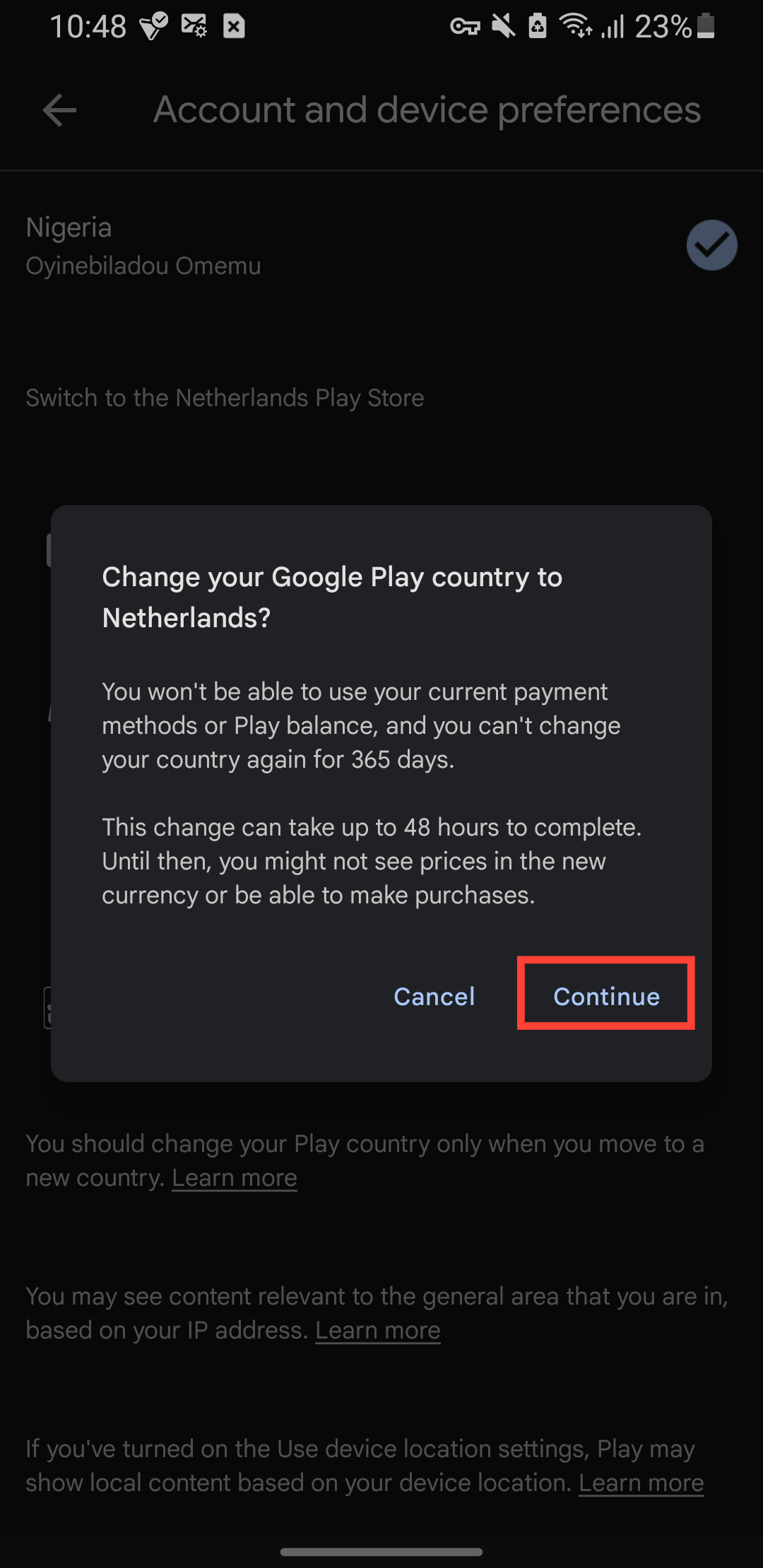 Step 5: Under the Country and profiles section, you'll see an option to Switch to the [region] Play Store if your phone detects you're in a different country.