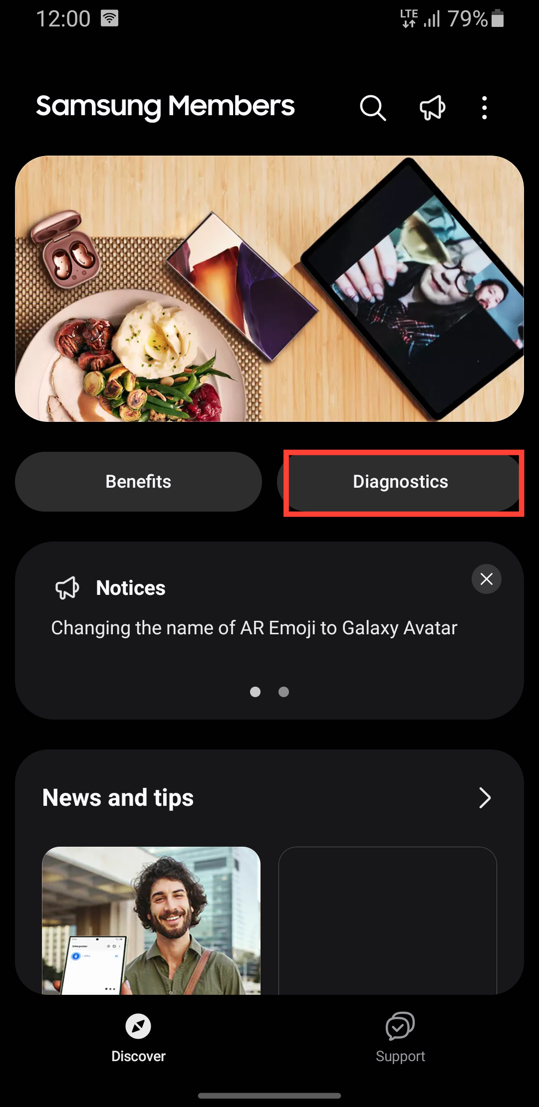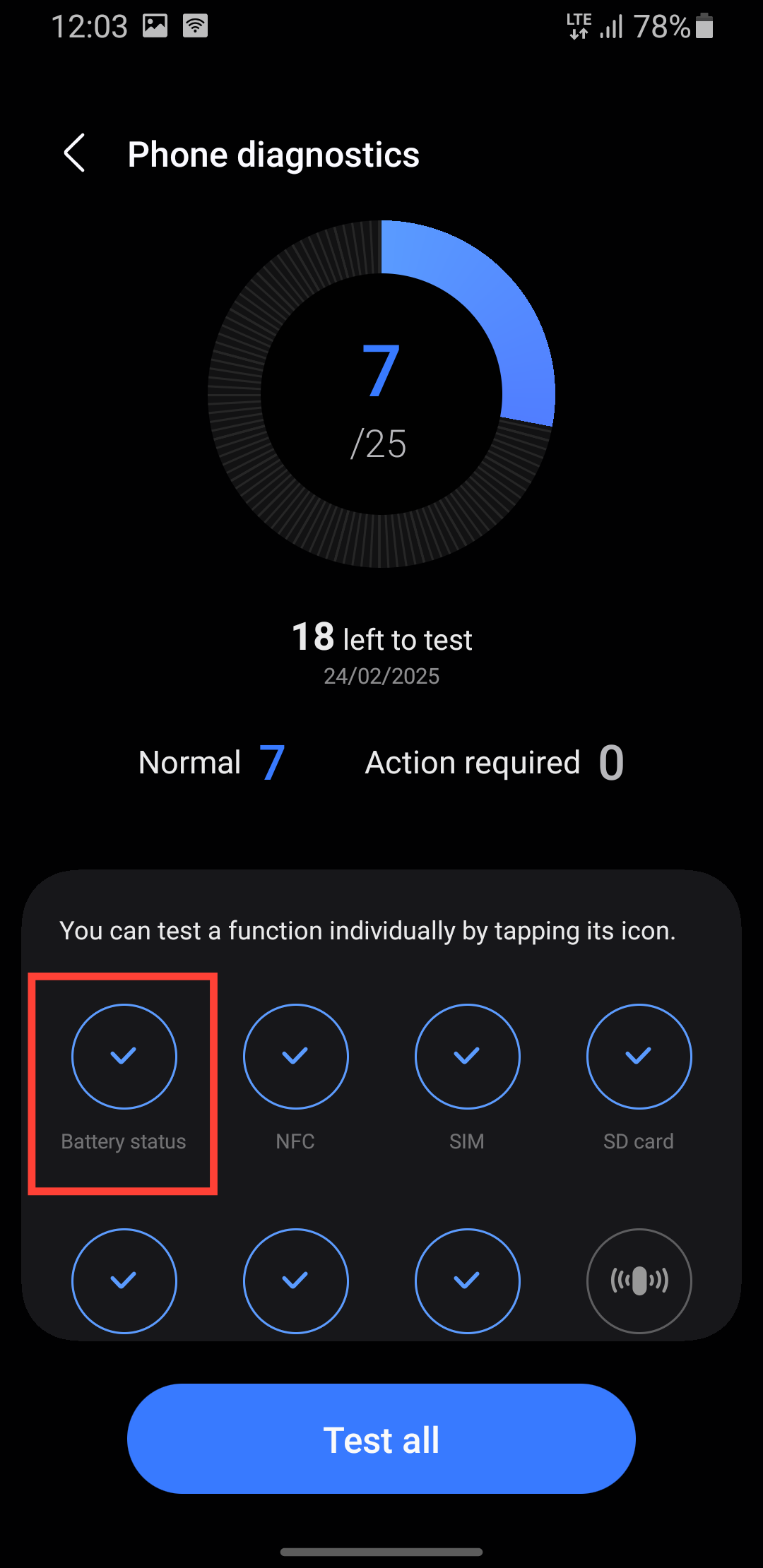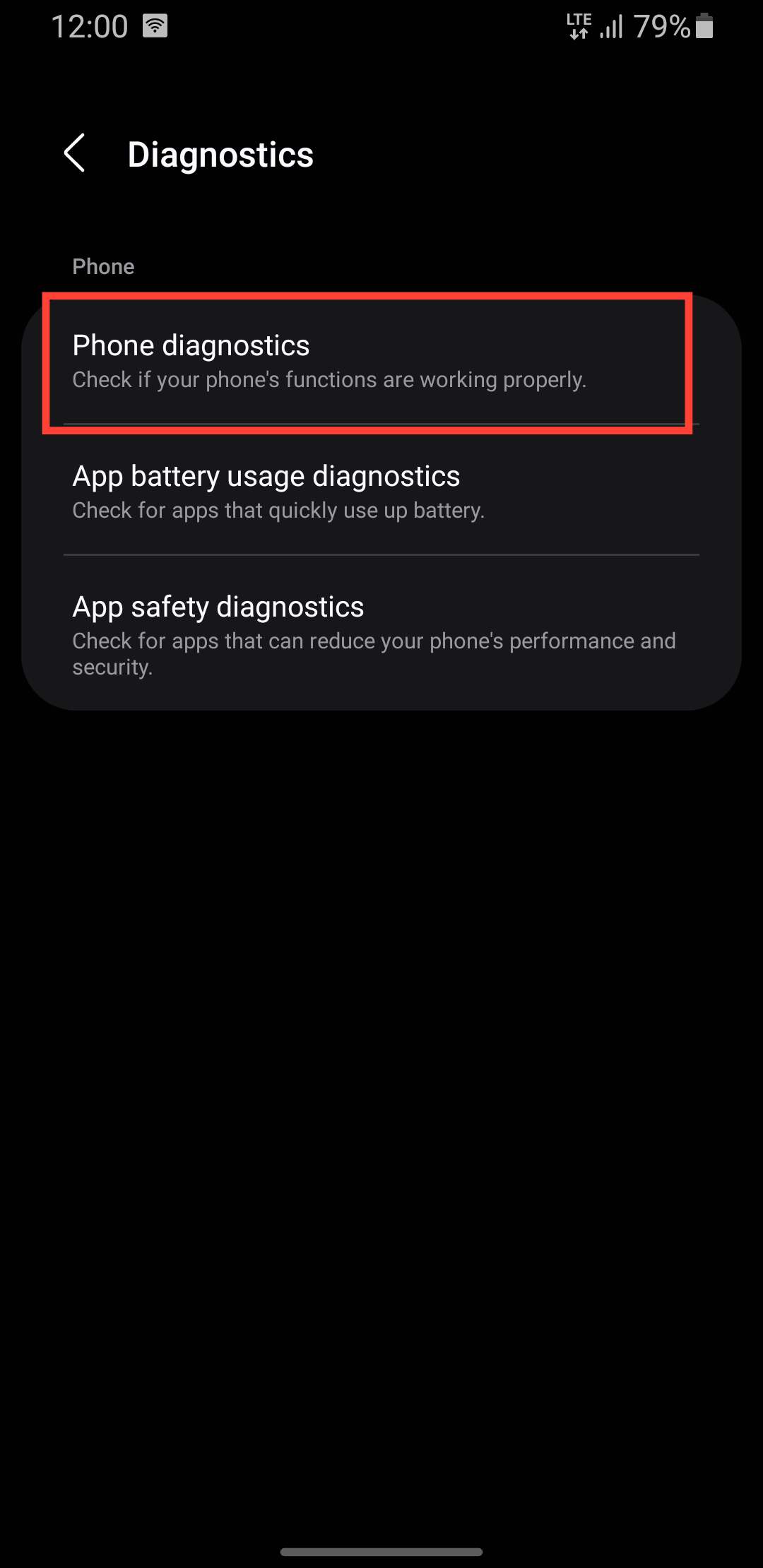 Step 3: Select "Phone diagnostics" to check health indicators. This will automatically run a test for the phone's performance and give an overall result including the battery.