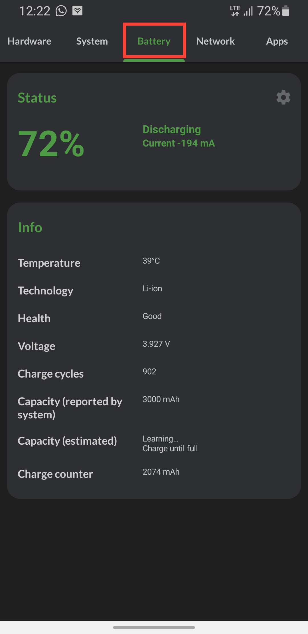 Step 2: Open the app and navigate to the "Battery" tab at the top of the screen. This will give you information on your battery health.