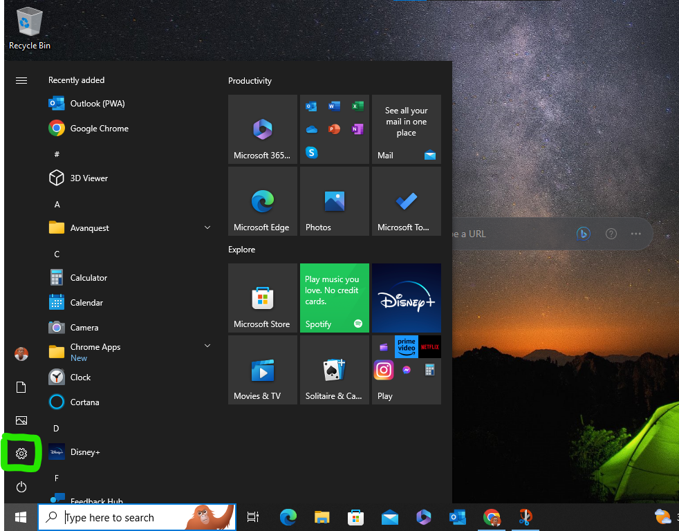 - Click on the start menu then select the gear icon.