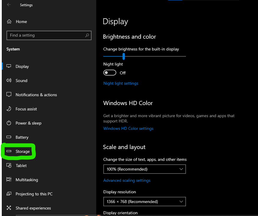 3. Select Storage.
