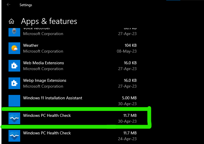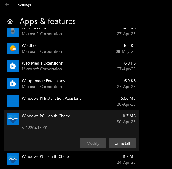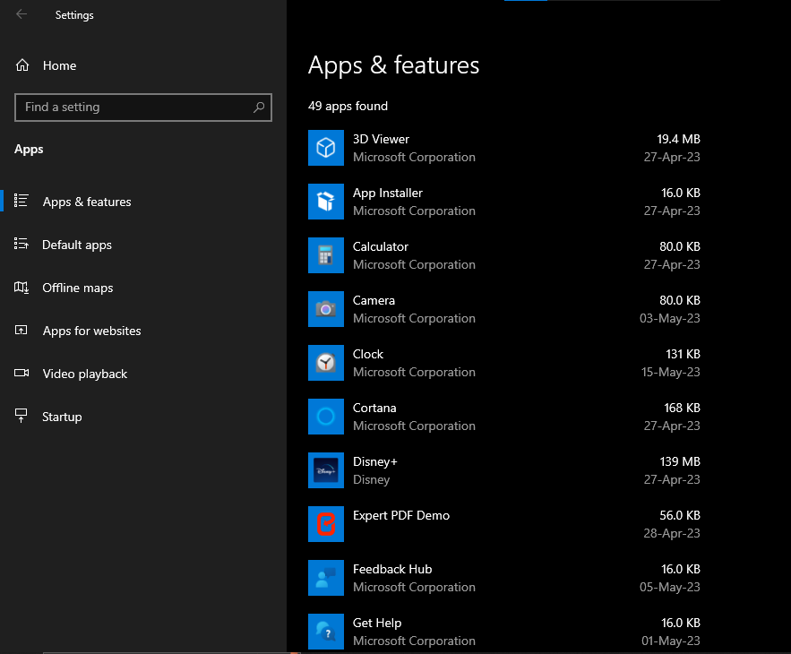 3. Upon clicking, you would be taken to the Apps & Features Page.