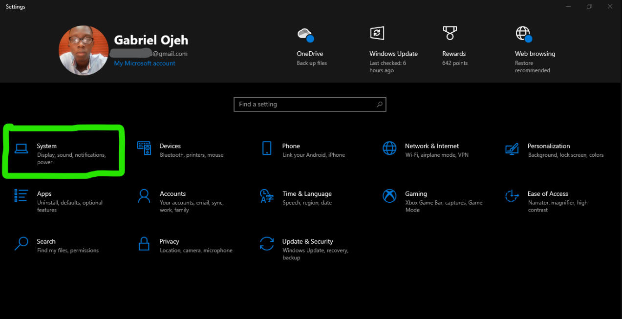2. Click on System.