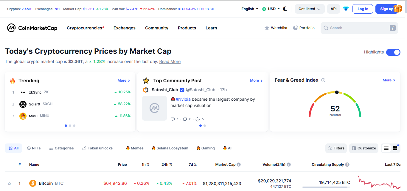 - Go to the CoinMarketCap website.