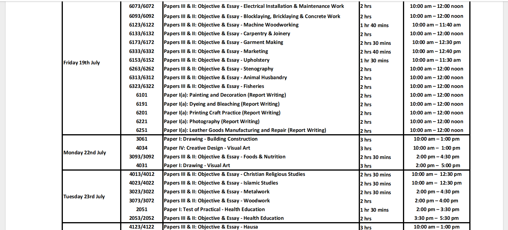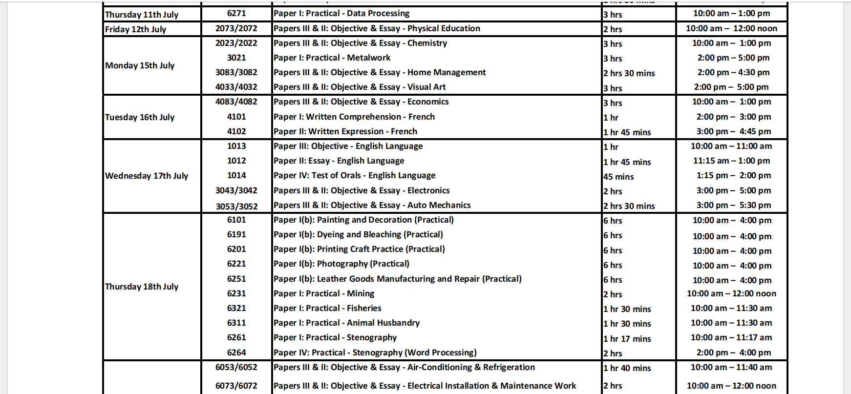 The National Examinations Council (NECO) has released the official timetable for the Senior School Certificate Examination (SSCE) 2024. This examination is conducted for candidates in their final year of senior secondary school in Nigeria.