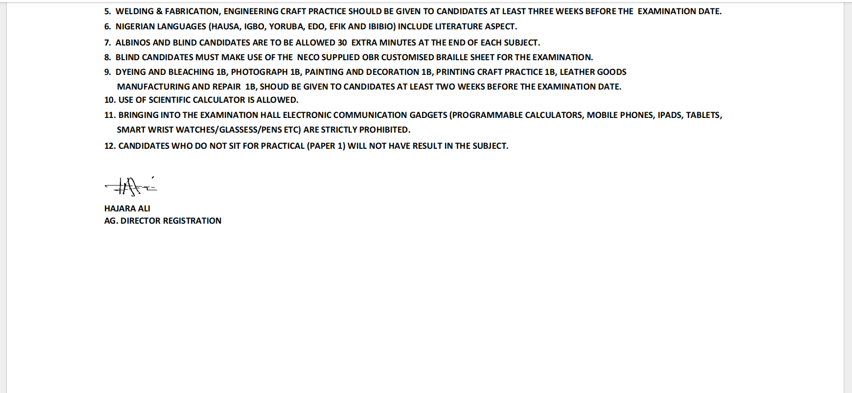 According to NECO, the examinations are scheduled from June 19th to July 26th, 2024. All candidates are required to sit for a maximum of nine subjects with 3-4 subjects from their area of specialization and a minimum of eight subjects.