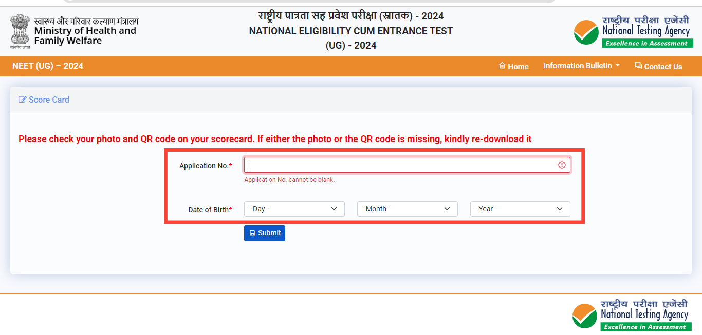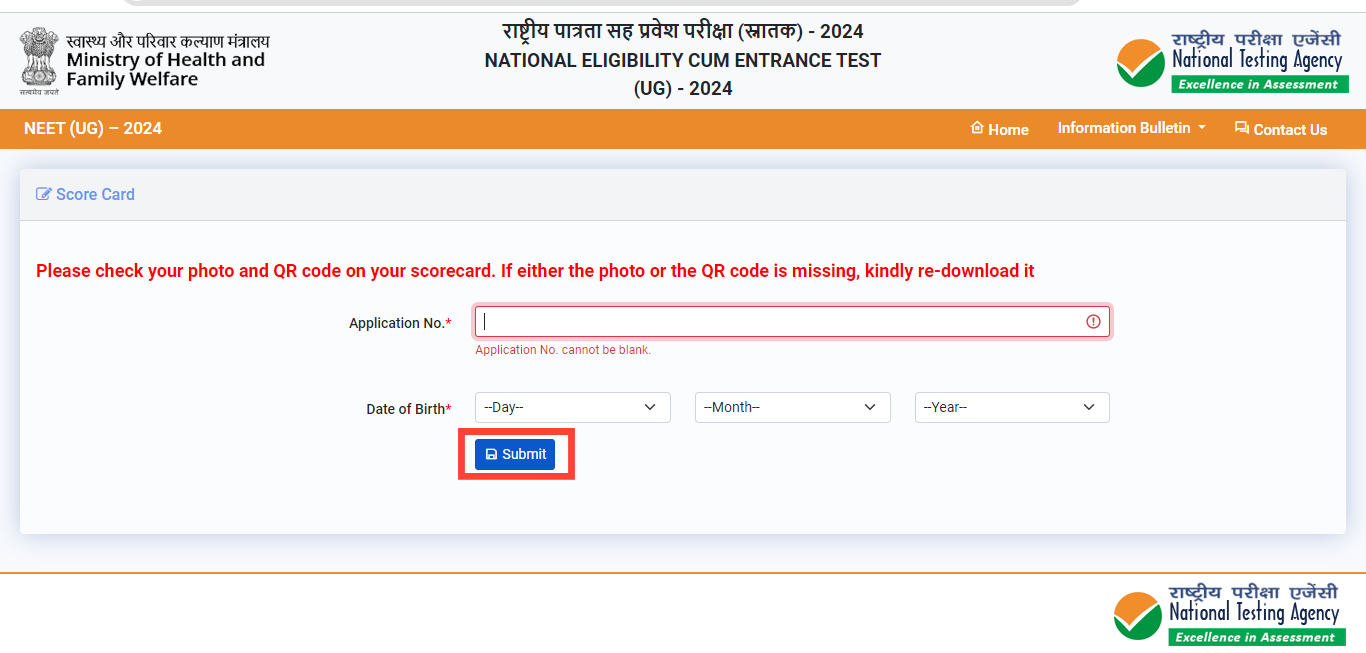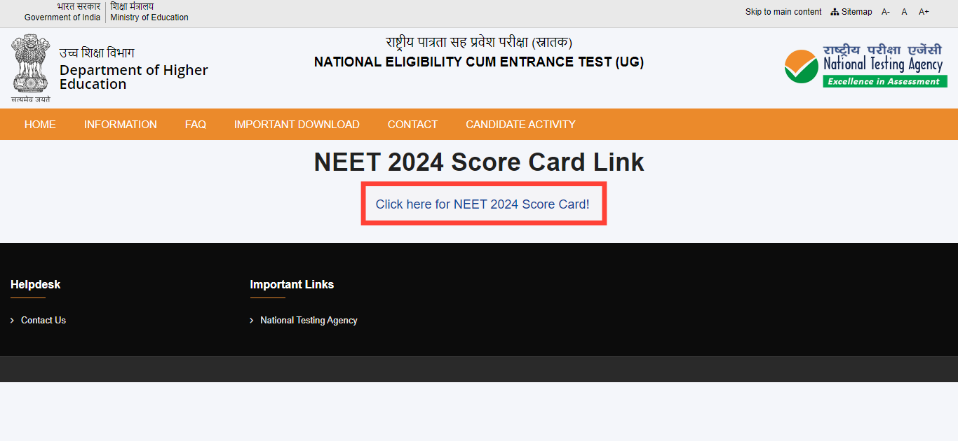 - Then, tap on “Click here for NEET 2024 Score Card”