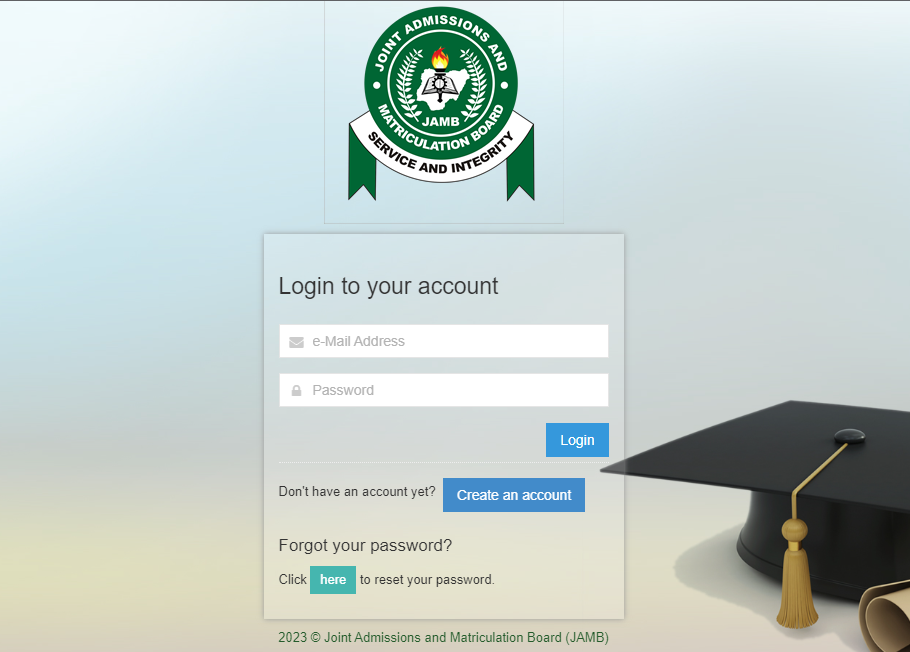 2. Input the Email Address and Password you used in applying for your JAMB Exam.