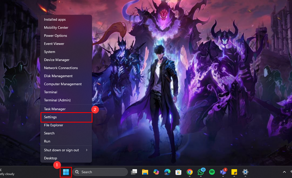 Step 1: Right-click the Start button on the taskbar and select "Settings"