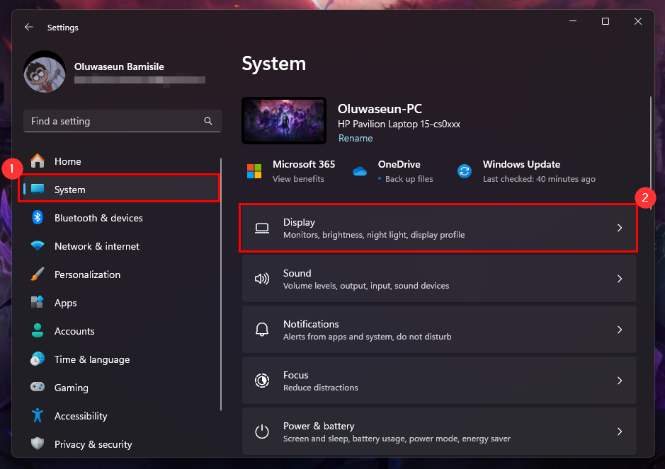 Step 2: Switch to the System tab and select "Display"
