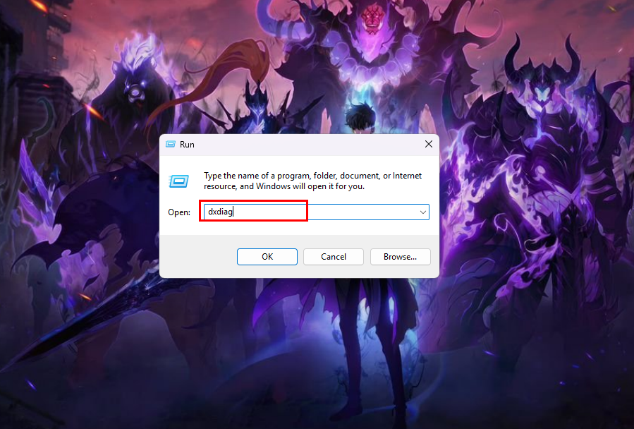 Step 1: Press Windows + R, type "dxdiag", and press Enter