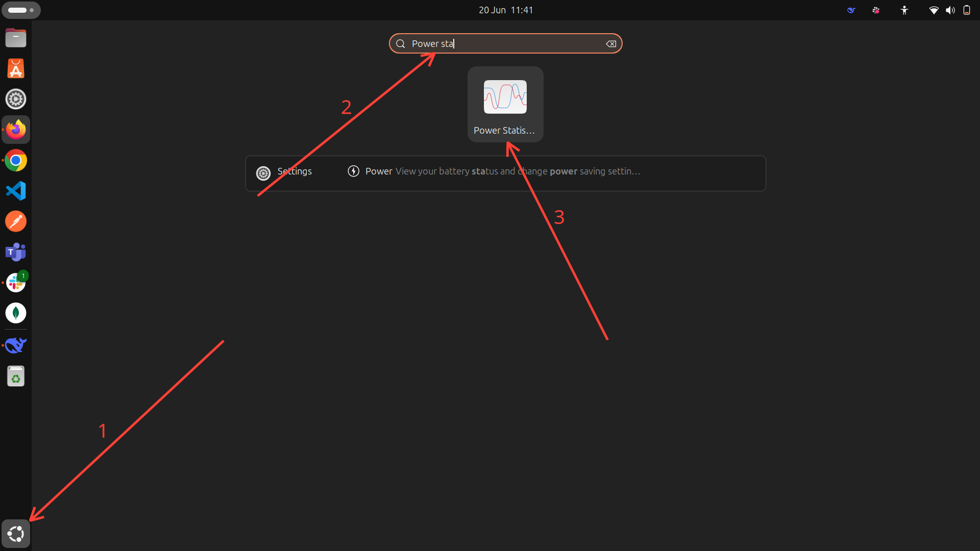 Step 1: Go to your Activities menu and open the Power Statistics app.