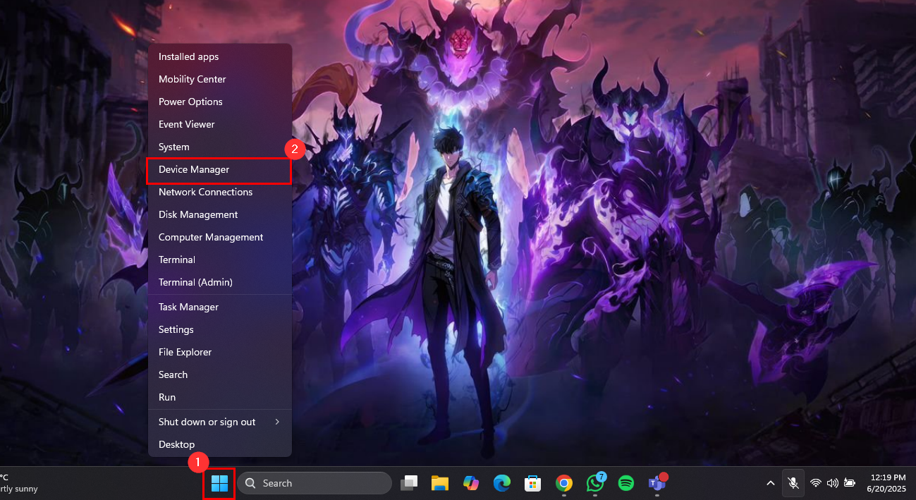 Step 1: Right-click the Start button on the taskbar and select "Task Manager" from the displayed options