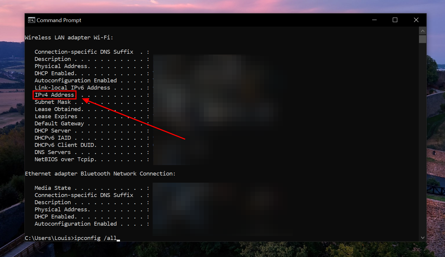 ipconfig /all(Yes, make sure there’s a space between “ipconfig” and “/all.”)