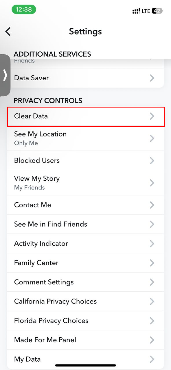 Step 3: Scroll down in the settings menu and select "Clear Data" under the Privacy Controls section