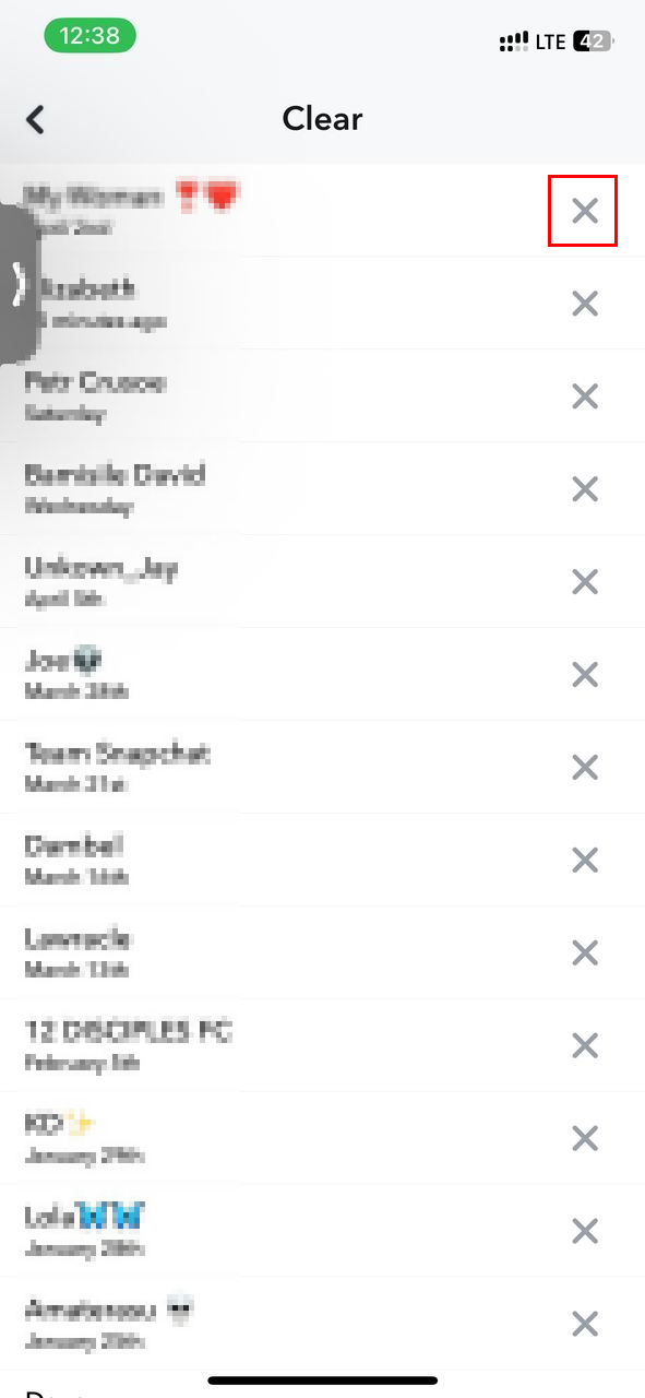 Step 5: Tap the X button next to the conversation you want to clear. This will remove the entire conversation from your chat history