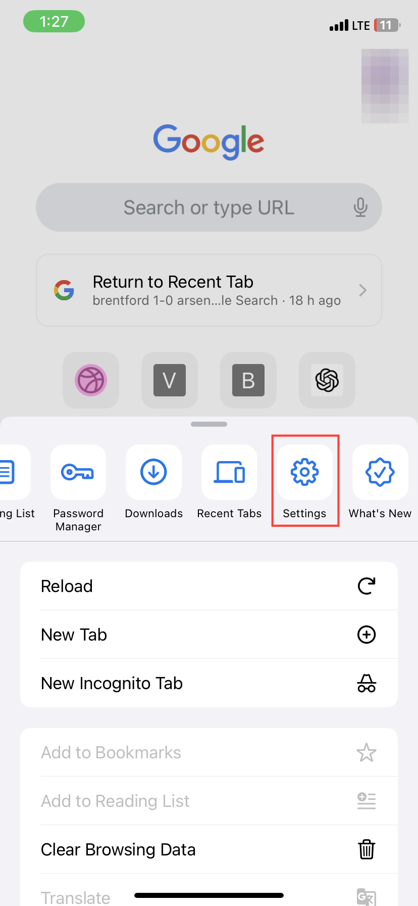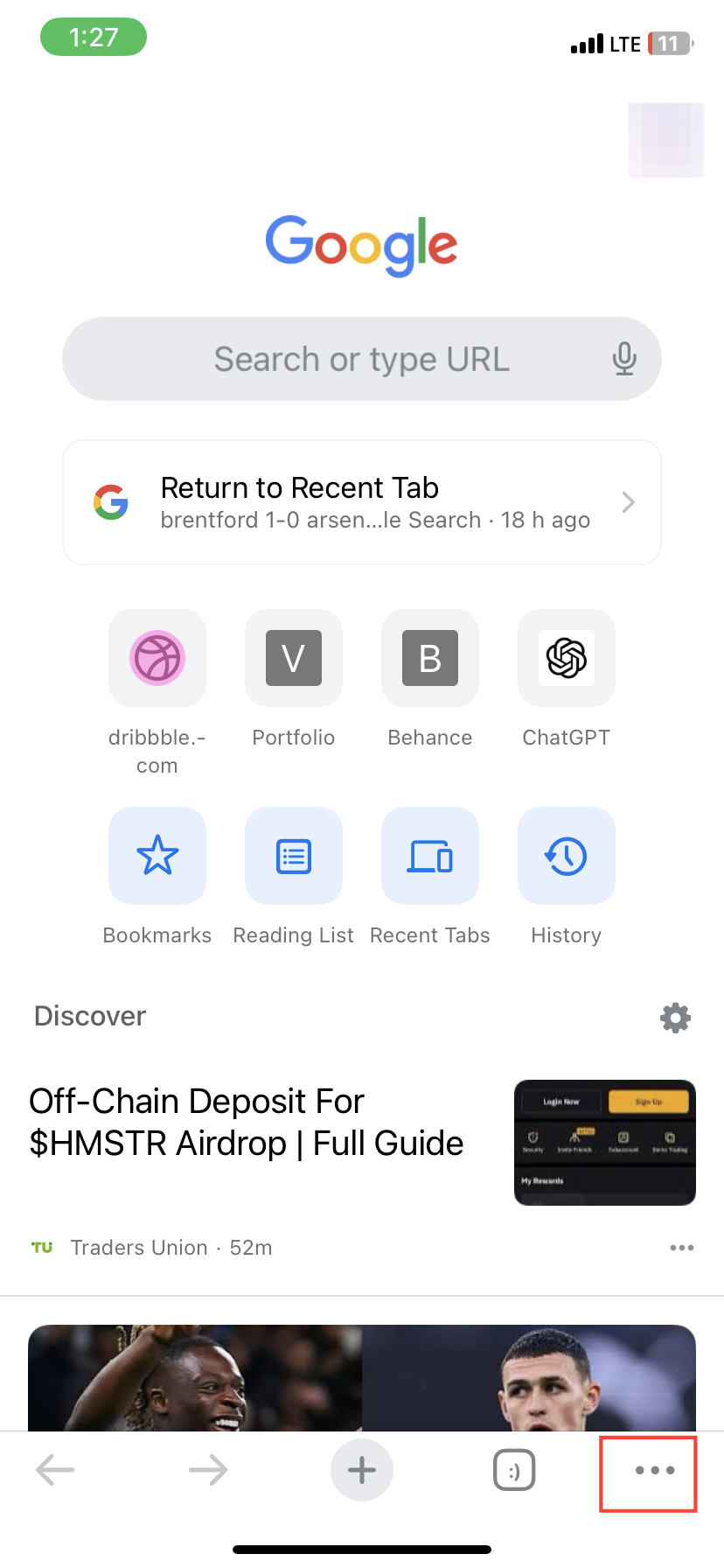 - Open the Chrome app. Then, tap the three-dot menu in the lower-right corner.