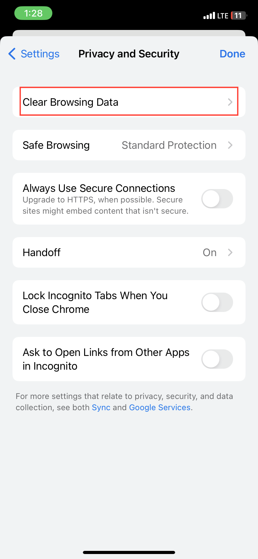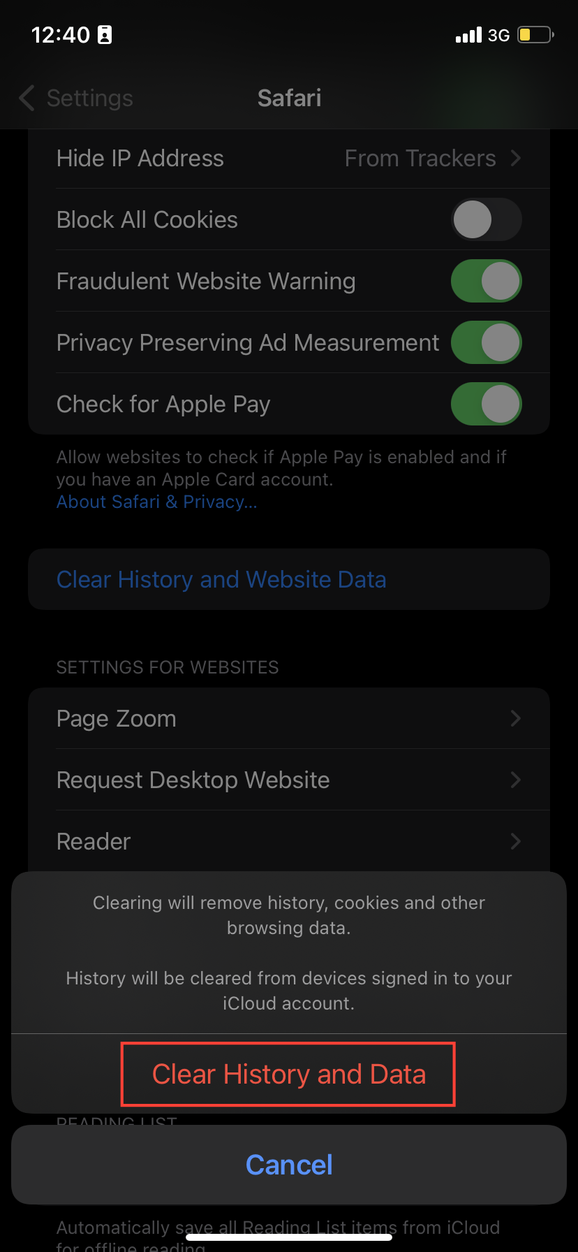 - Scroll down and select Clear History and Website Data. This will delete your browsing history, cached images, and cookies from Safari.